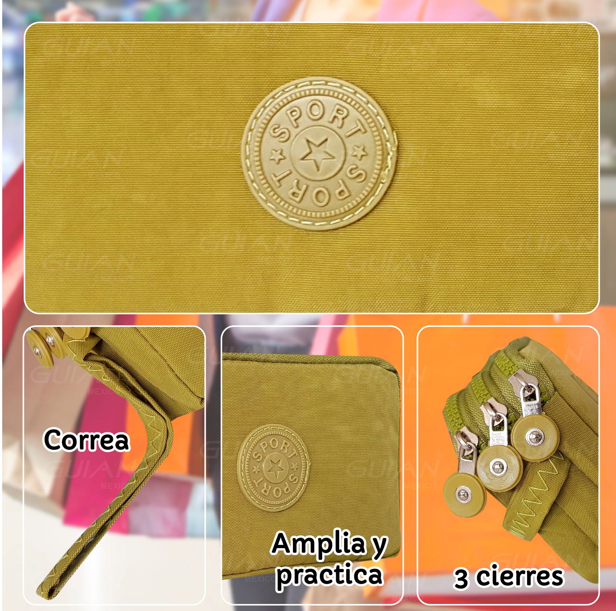 Cartera /Billetera/ Bolsa con tela de alta calidad, con muñequera que otorga una sensación cómoda al tacto ademas le aporta un toque Juvenil ya que cada uno tiene un color diferente.