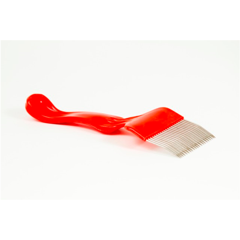 Sus cerdas de acero inoxidable garantizan durabilidad y resistencia, mientras que el mango ergonómico proporciona un agarre cómodo, ideal para largas jornadas de trabajo. Además, su diseño compacto lo convierte en una opción práctica y eficiente para usar en cualquier colmena.