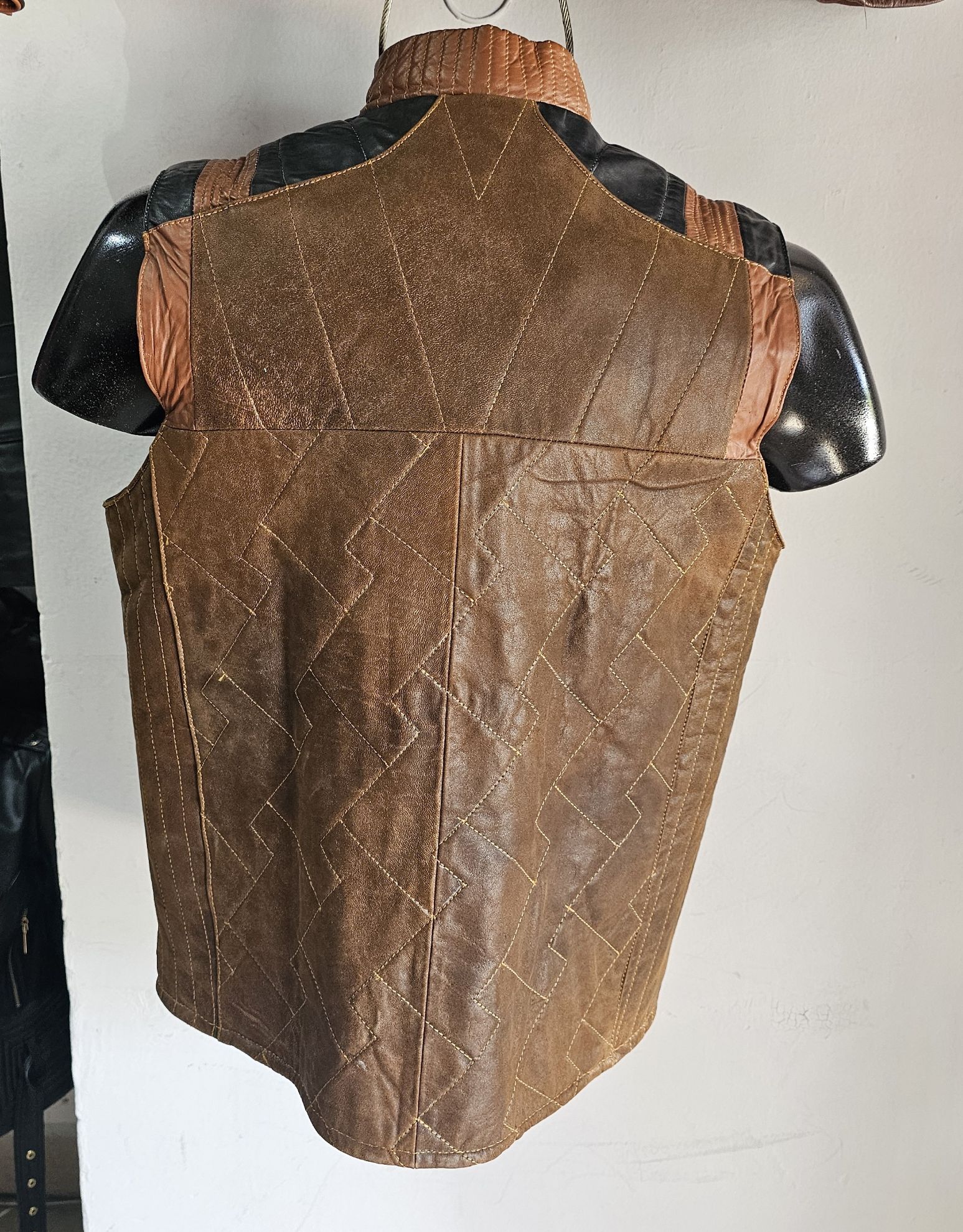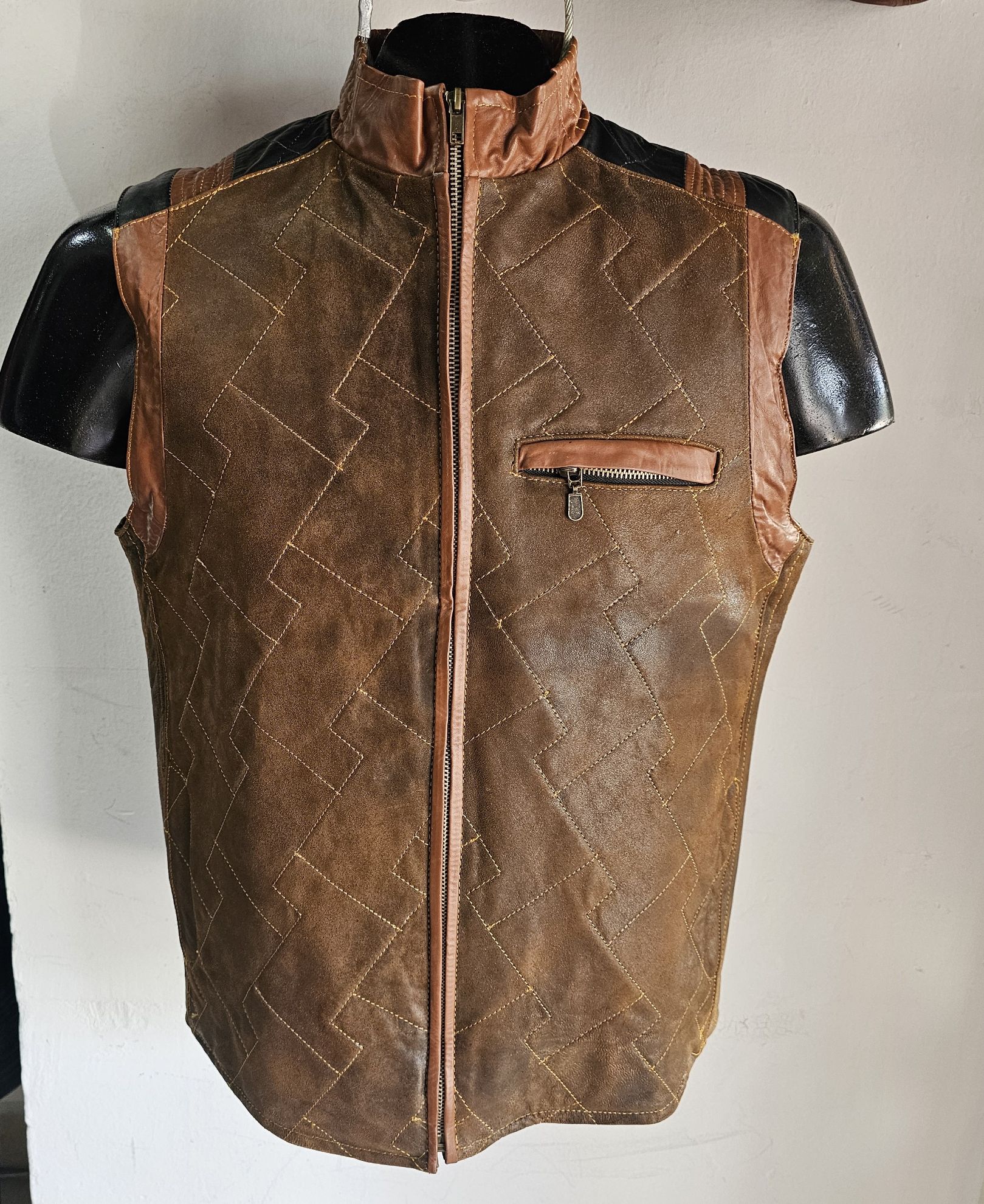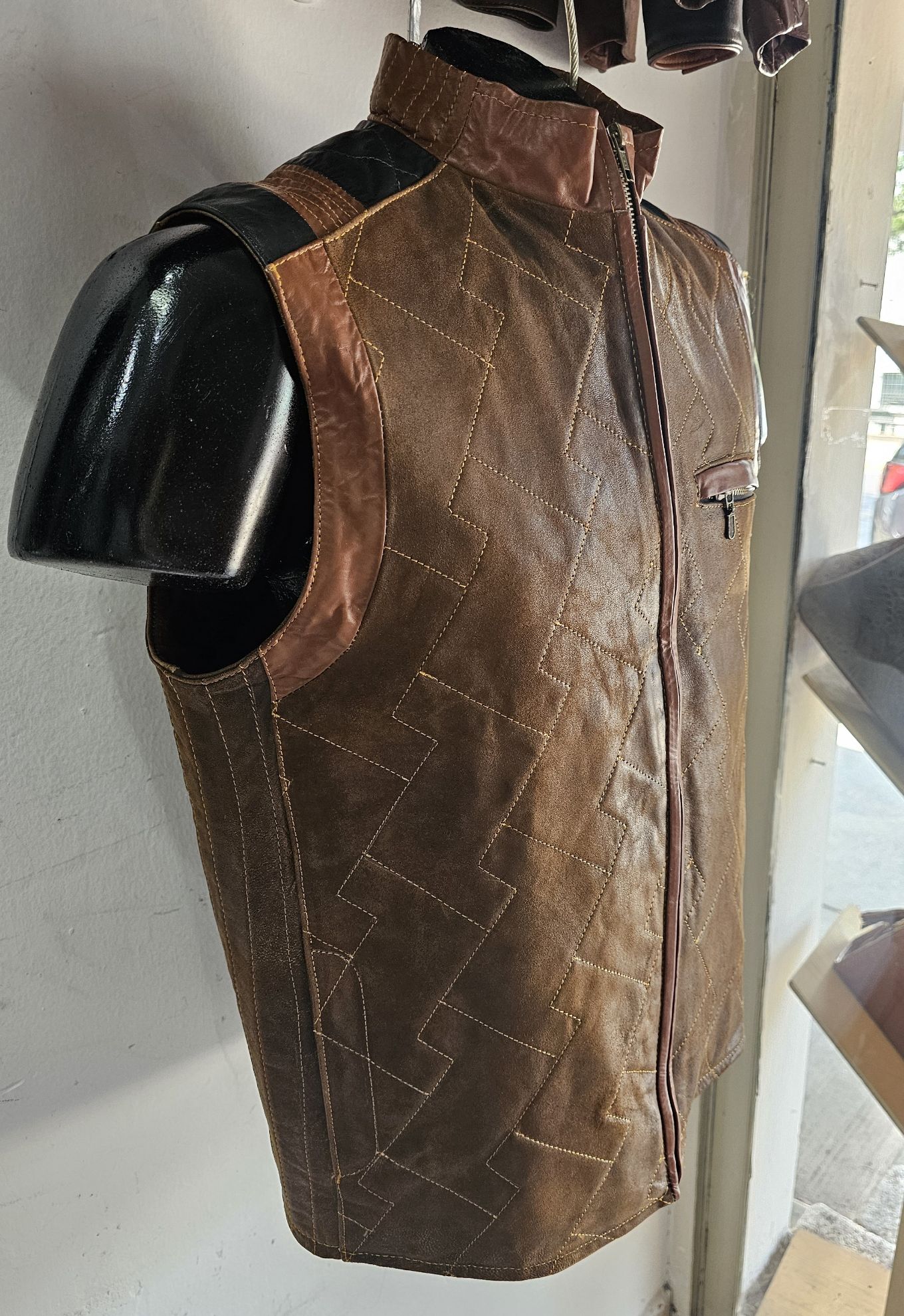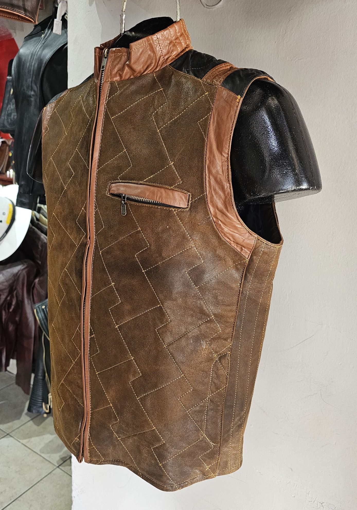 Chaleco Piel Labrado de borrego Peligüey (Borrego Tabasco) color café. Diseño atractivo, juvenil