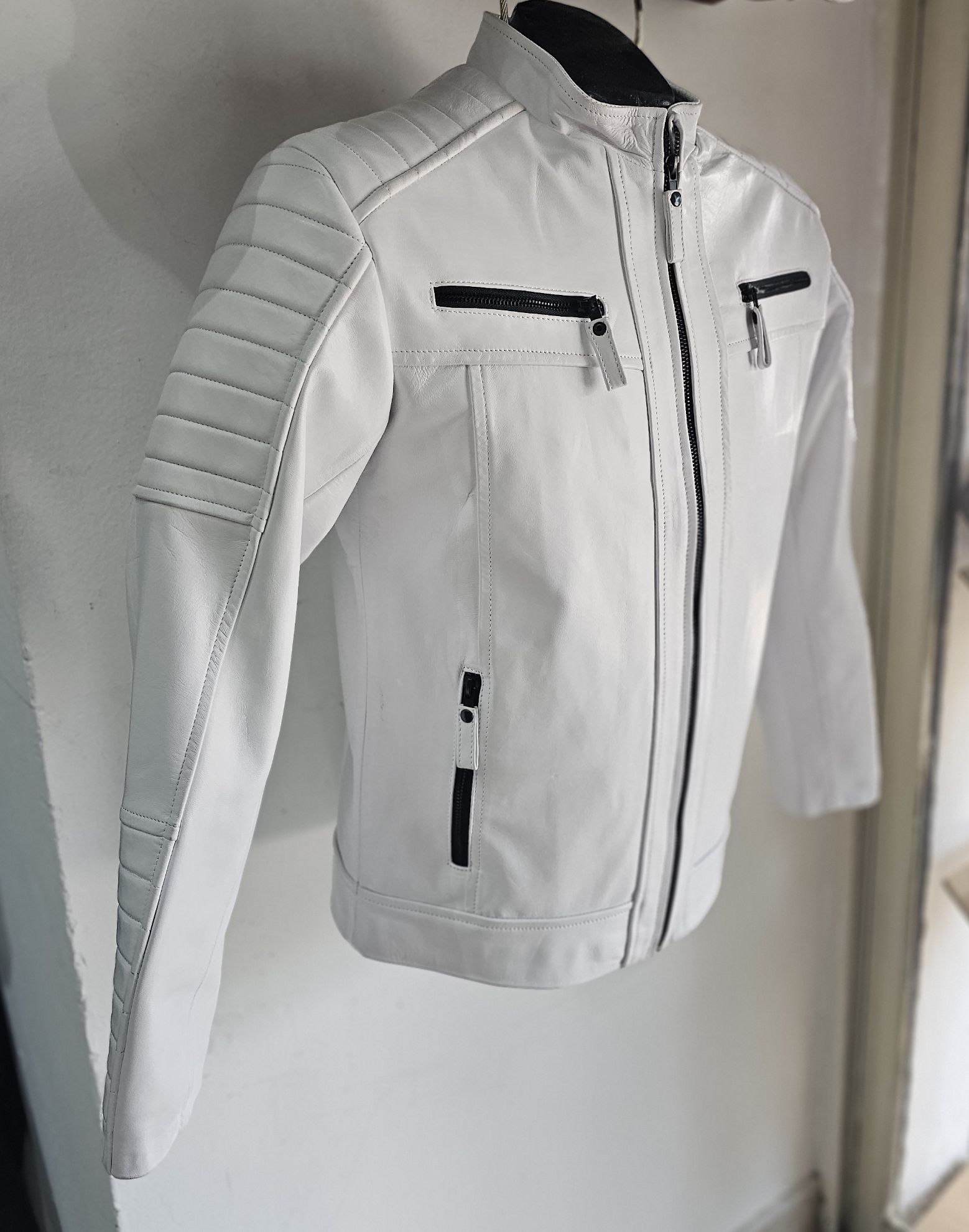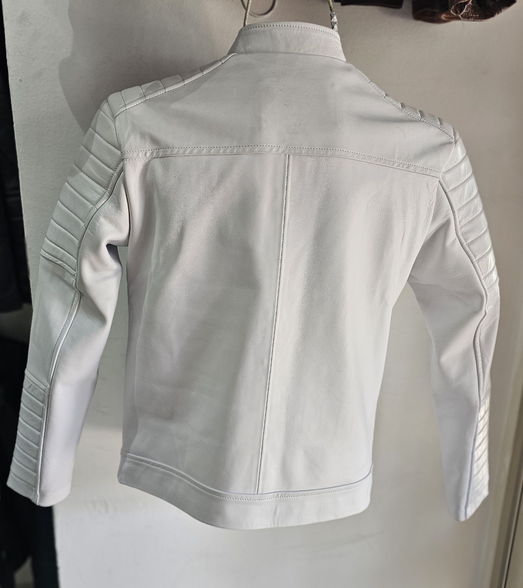 Chamarra de piel de borrego peligüey color blanca. 100% nacional. Durable y elegante