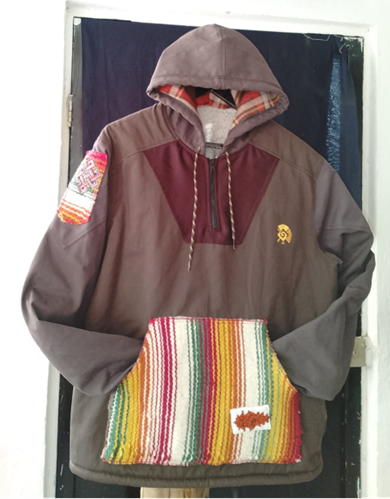 Chamarra muy Mexicana, con motivos bordados alusivos a México y sus culturas, en tela Gabardina, con forro en borrega, súper calientito, gorro y mangas en polar, puños de cárdigan(ajustable),jareta en el gorro, cierre grueso, chico y grande, jareta a la cintura.