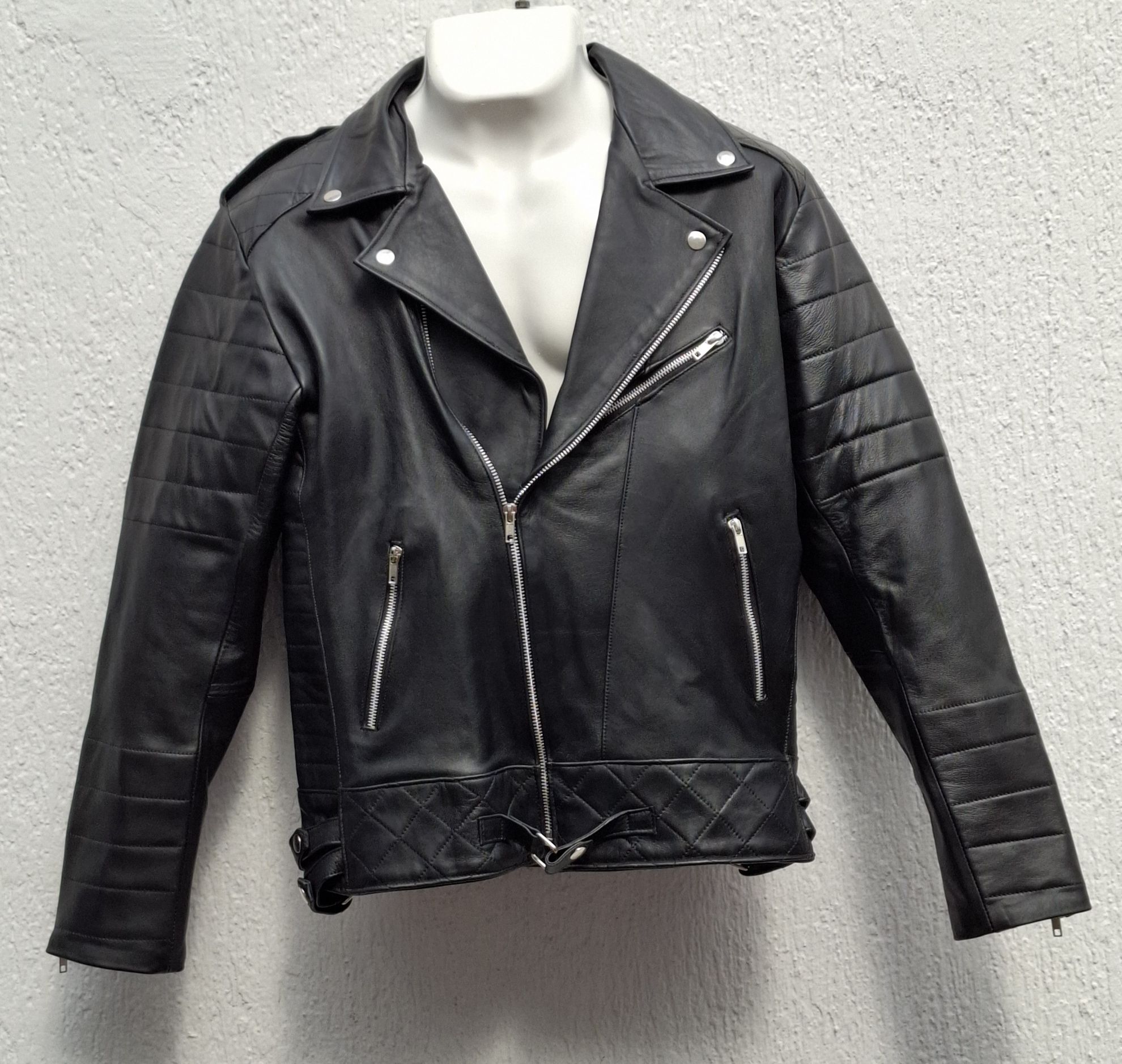 Chamarra Negra Piel Cruzada de borrego peligüey. Ideal para motociclistas y gente de aventura. Tallas Chica, Mediana, Grande, XL, XXL, XXXL
