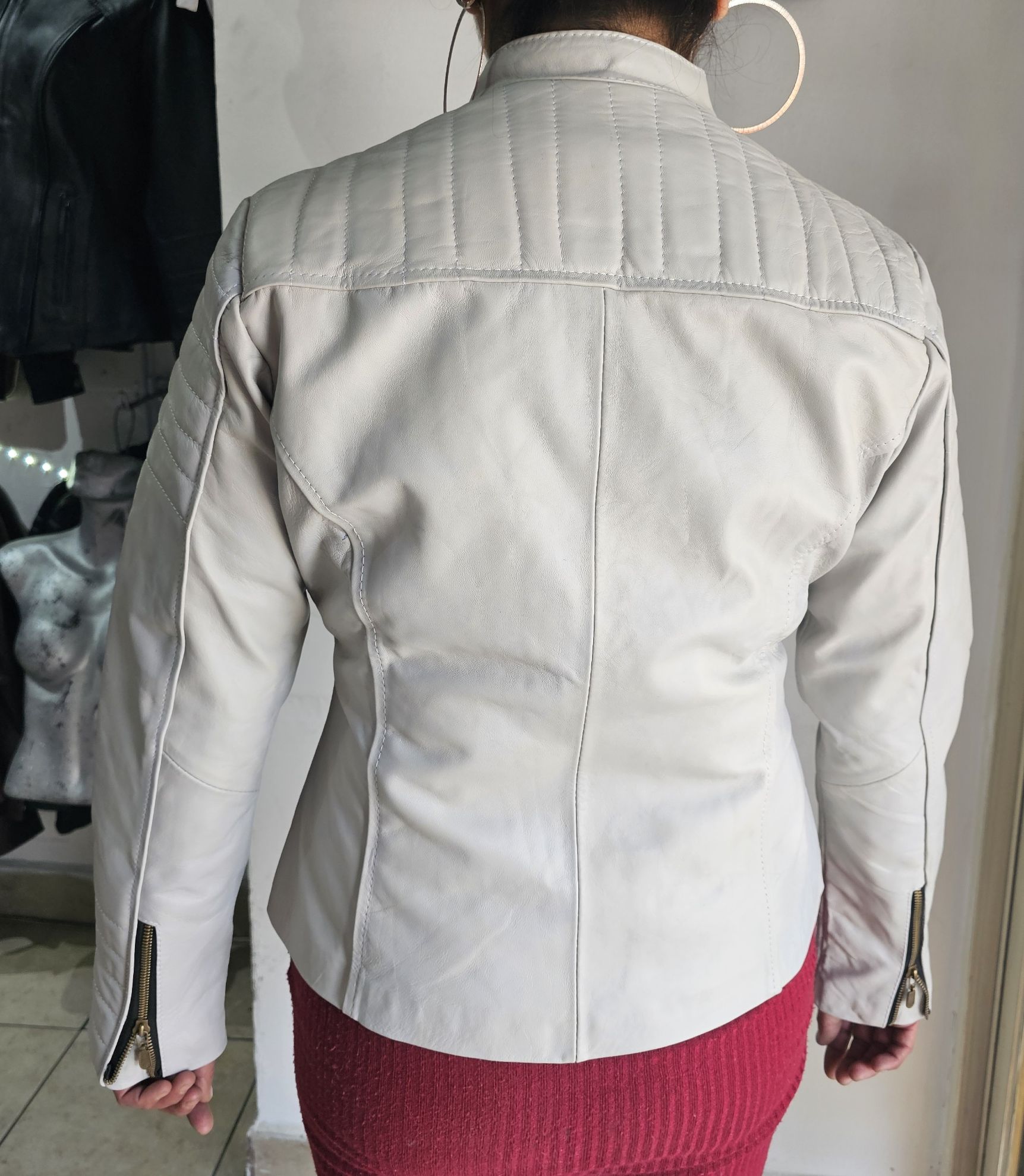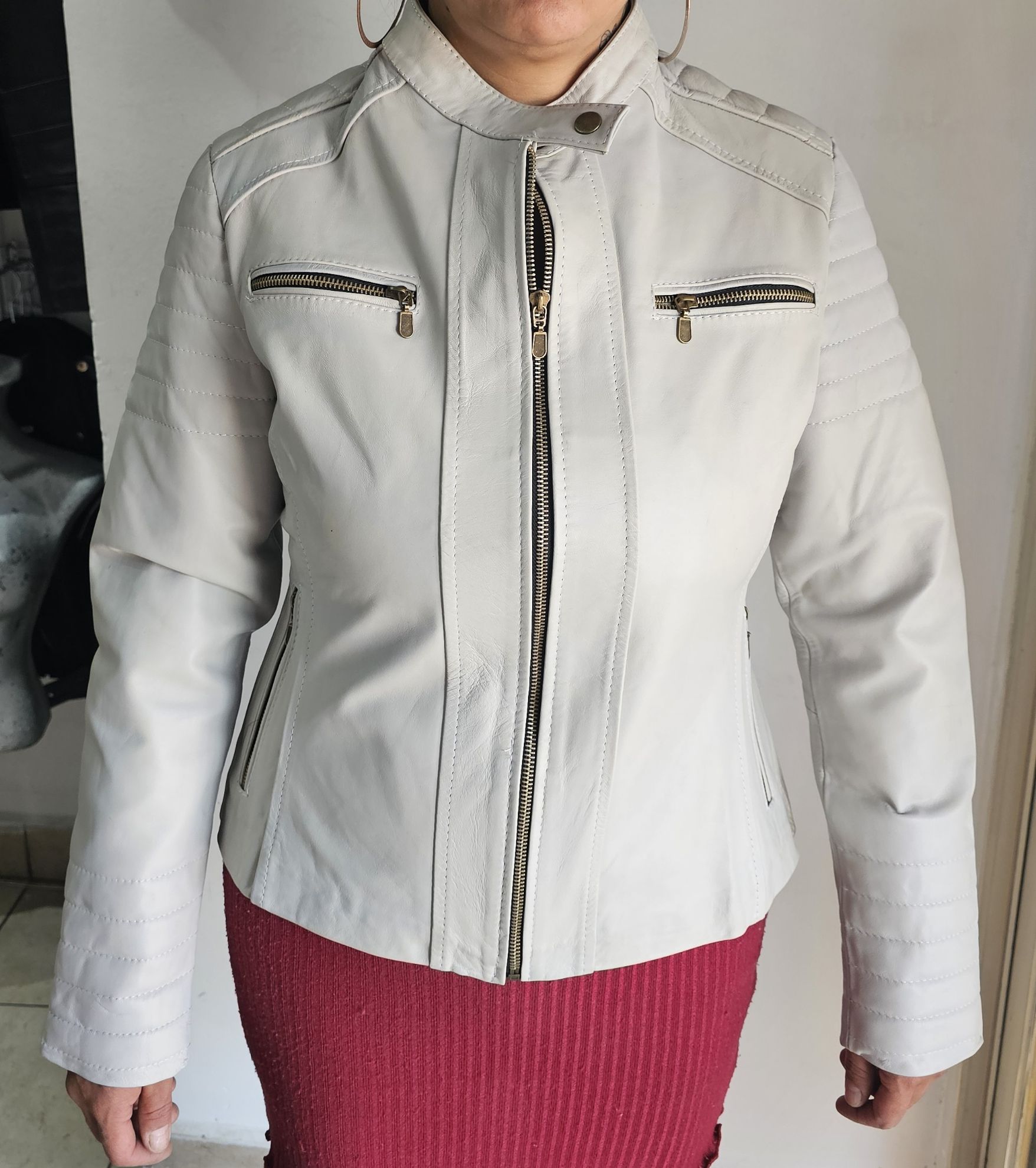 Chamarra en Piel de Borrego Peligüey (Borrego Tabasco) Color Blanca para mujer. Diseño elegante y vanguardia