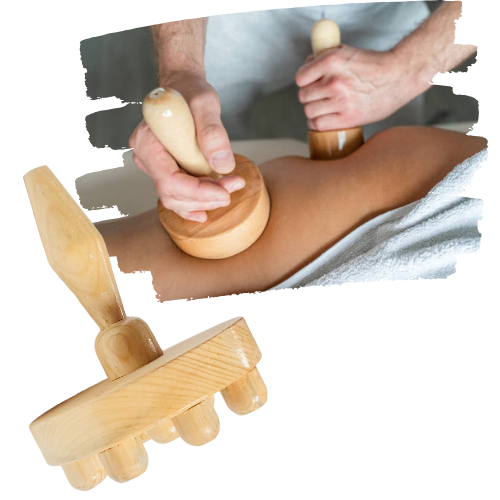SE BASA EN UN MASAJE REALIZADO A TRAVÉS DEL USO DE INSTRUMENTOS DE MADERA DE DIFERENTES MODELOS PARA CADA PARTE DEL CUERPO QUE SE DESEA TRABAJAR.