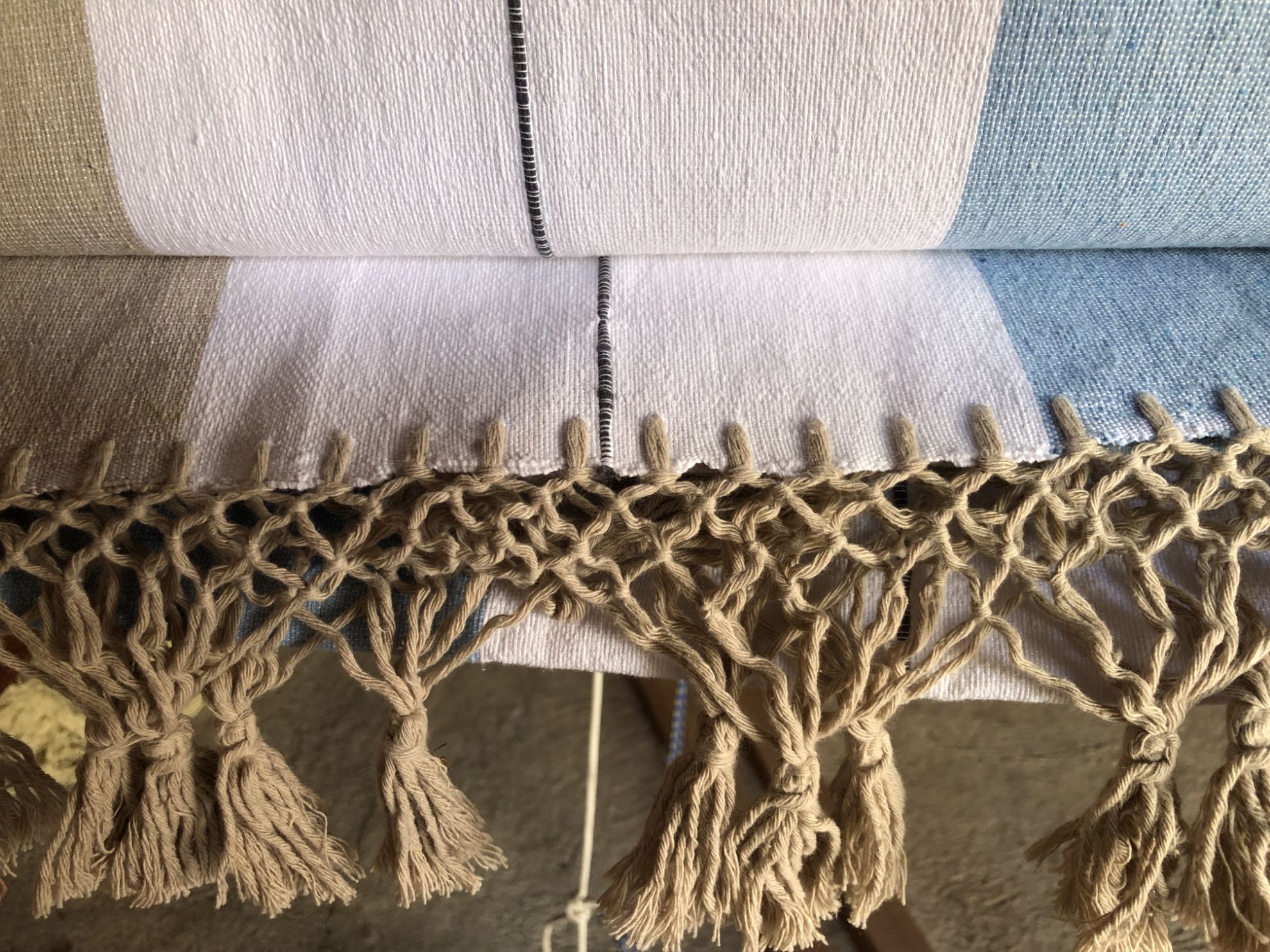 Hermosa colcha oaxaqueña en colores neutros tejido en telar de pedal