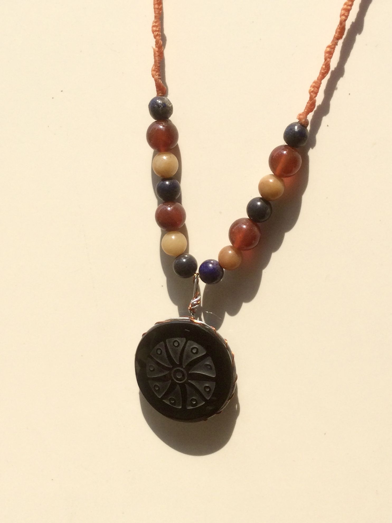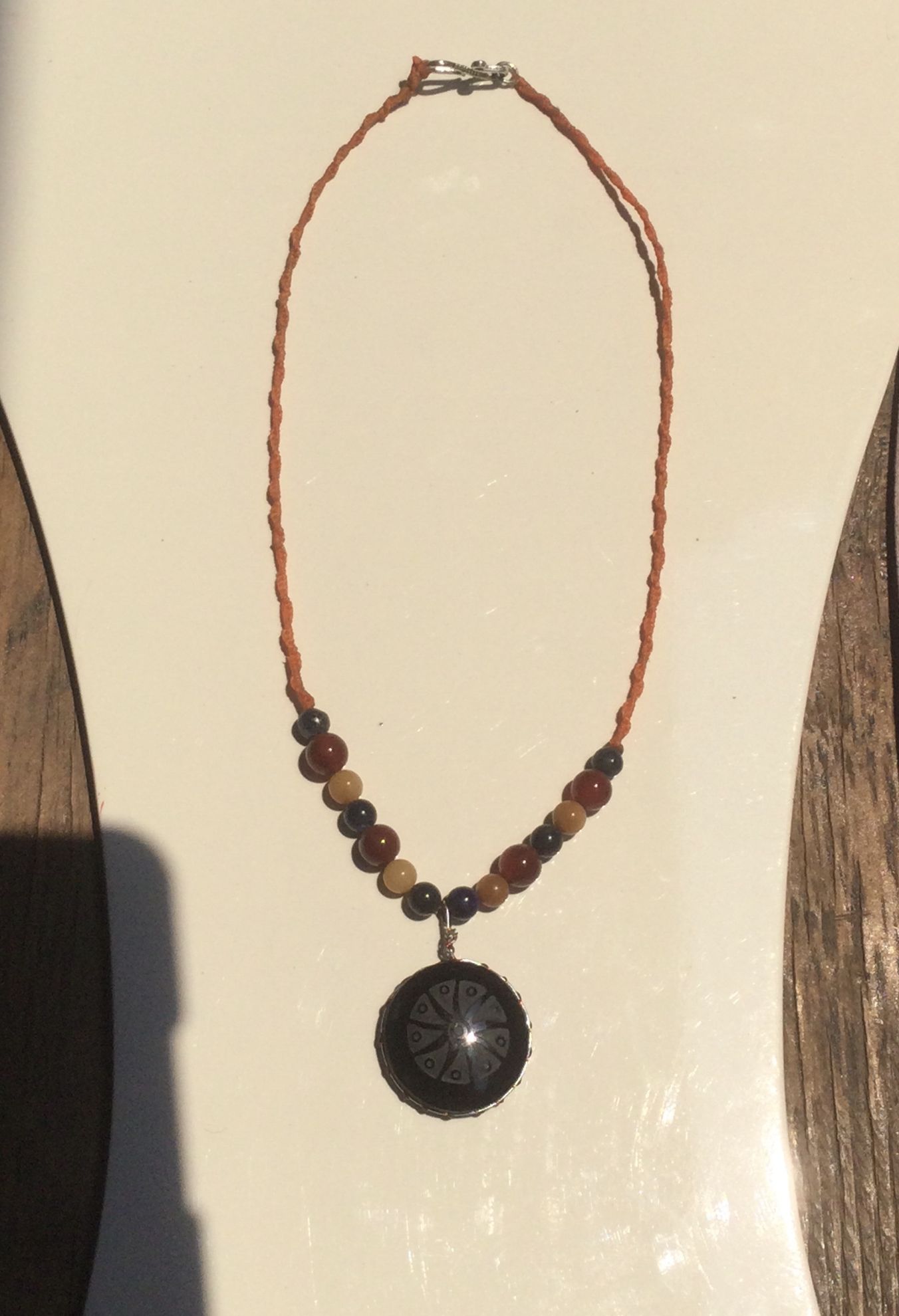 Sumérgete en la esencia mística de México con nuestro collar con colgante de obsidiana, adornado con un hikuri de 35 mm meticulosamente tallado, también conocido como peyote. Combinado maravillosamente con cuentas de ágata y jade amarillo, este collar colgante mide 22 pulgadas y rezuma elegancia y poder. La obsidiana, una piedra volcánica, reconocida por sus propiedades purificadoras, protectoras y reveladoras, sirve como escudo energético, disipando la negatividad y revelando la verdad interior. Esta potente piedra de fuego volcánico simboliza la fuerza y la transformación. El hikuri, o peyote, representado en el colgante, es una planta sagrada utilizada durante siglos en los rituales sagrados de los pueblos indígenas de América Central y del Sur. Símbolo de visión espiritual, curación y conexión con lo divino, el peyote es venerado por su capacidad para elevar la conciencia y abrir la puerta a dimensiones superiores de percepción. Use este collar con gratitud y reverencia por las tradiciones antiguas, permitiendo que su poder lo guíe hacia la armonía interior y la transformación espiritual.