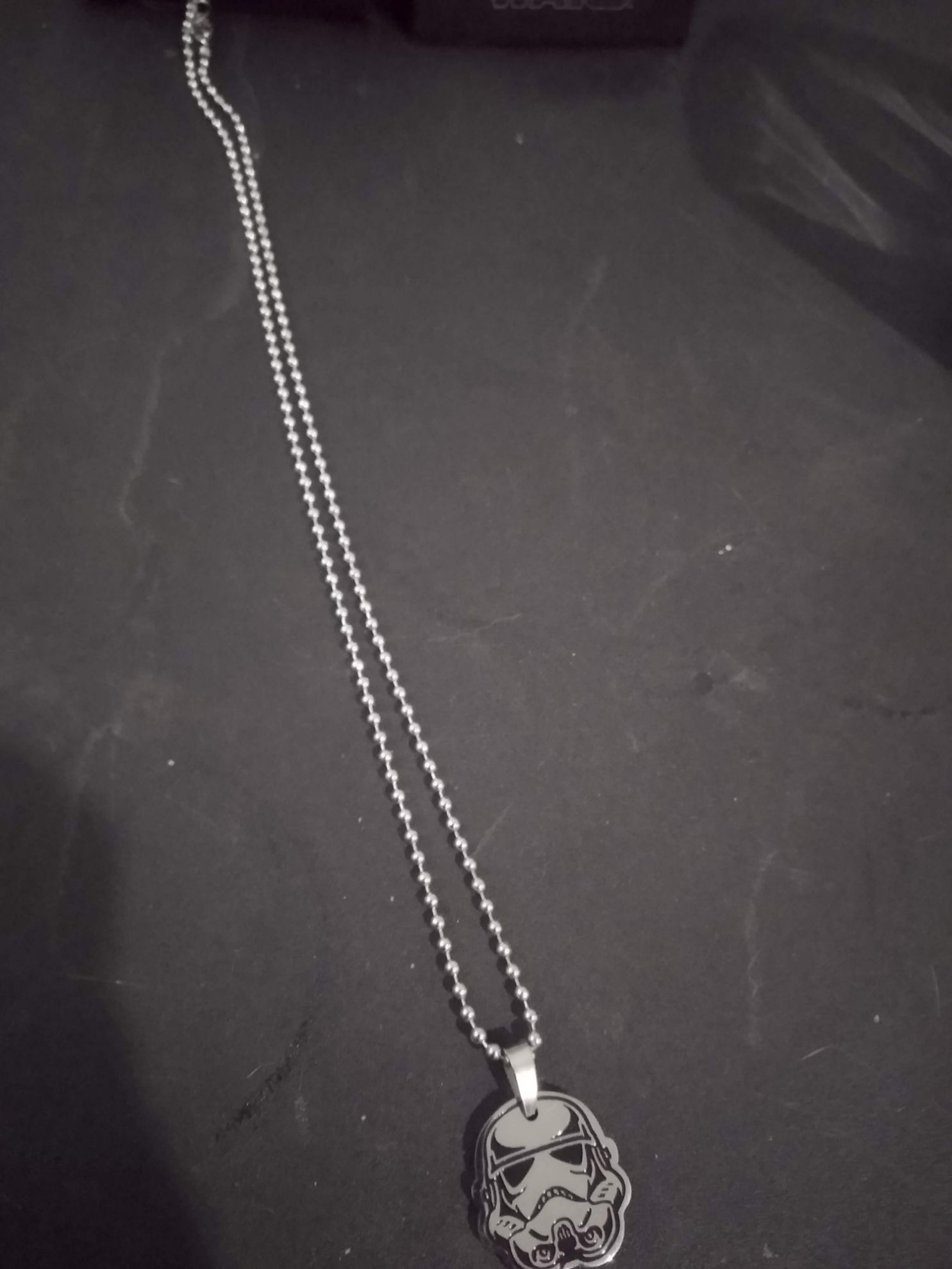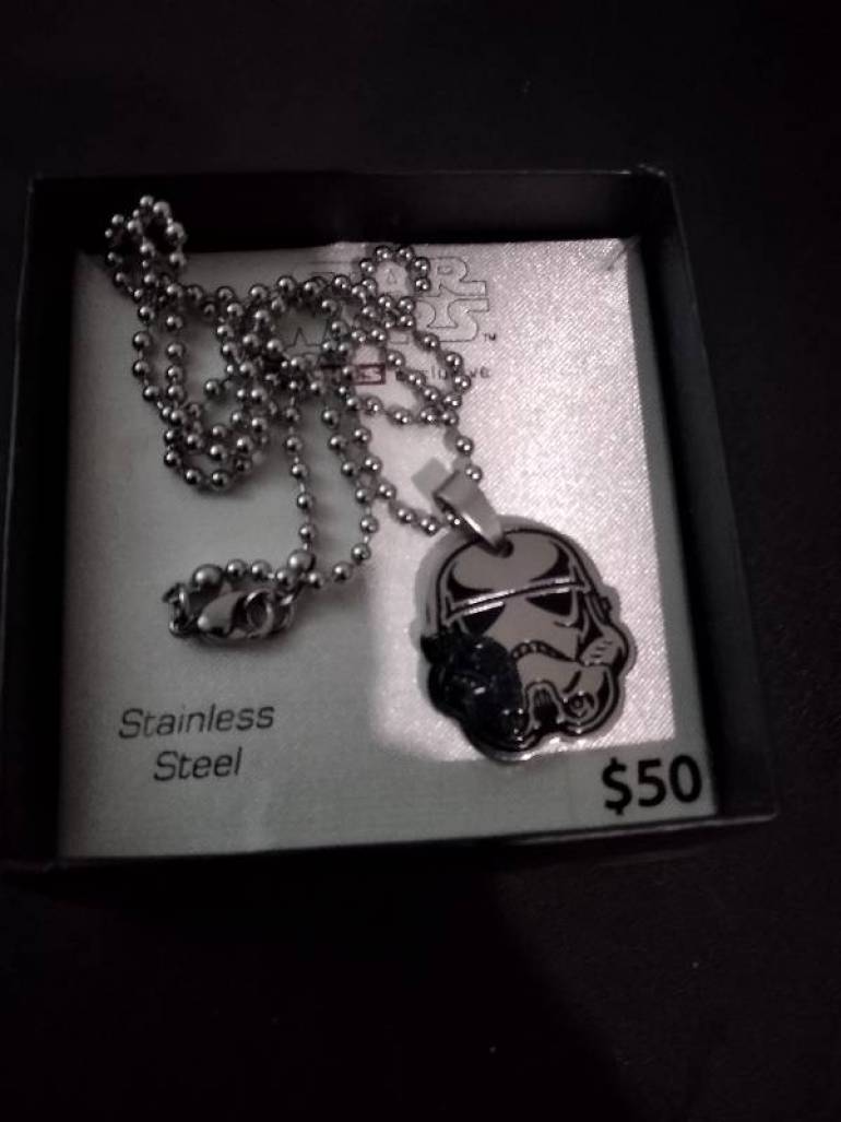 Collar con dije de stormtrooper de acero inoxidable. 60 cm aprox. NUEVO.