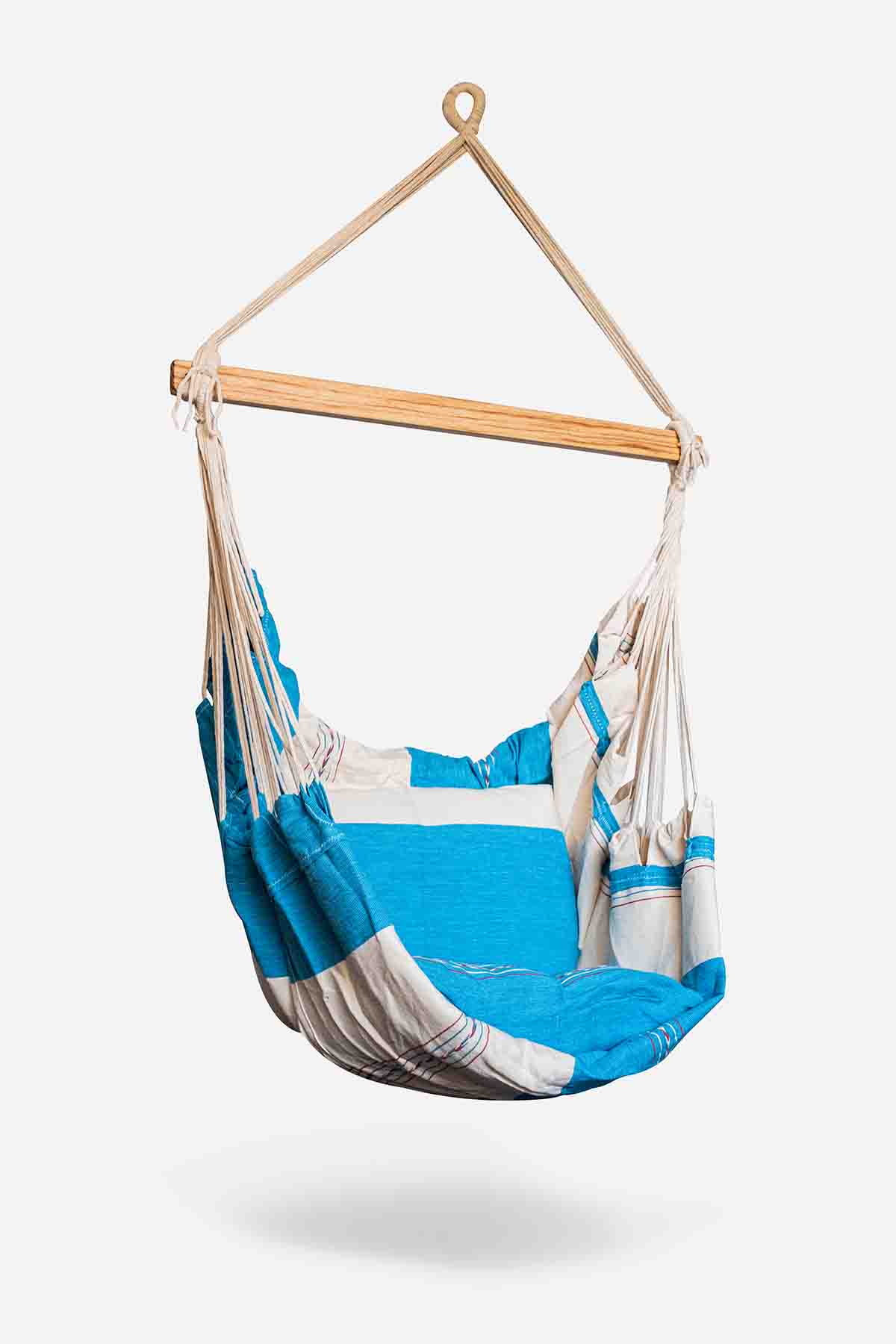 Límite de peso: 120 kg.Capacidad: 1 persona adulta.Material: Telar de algodón y madera recta de pino.
