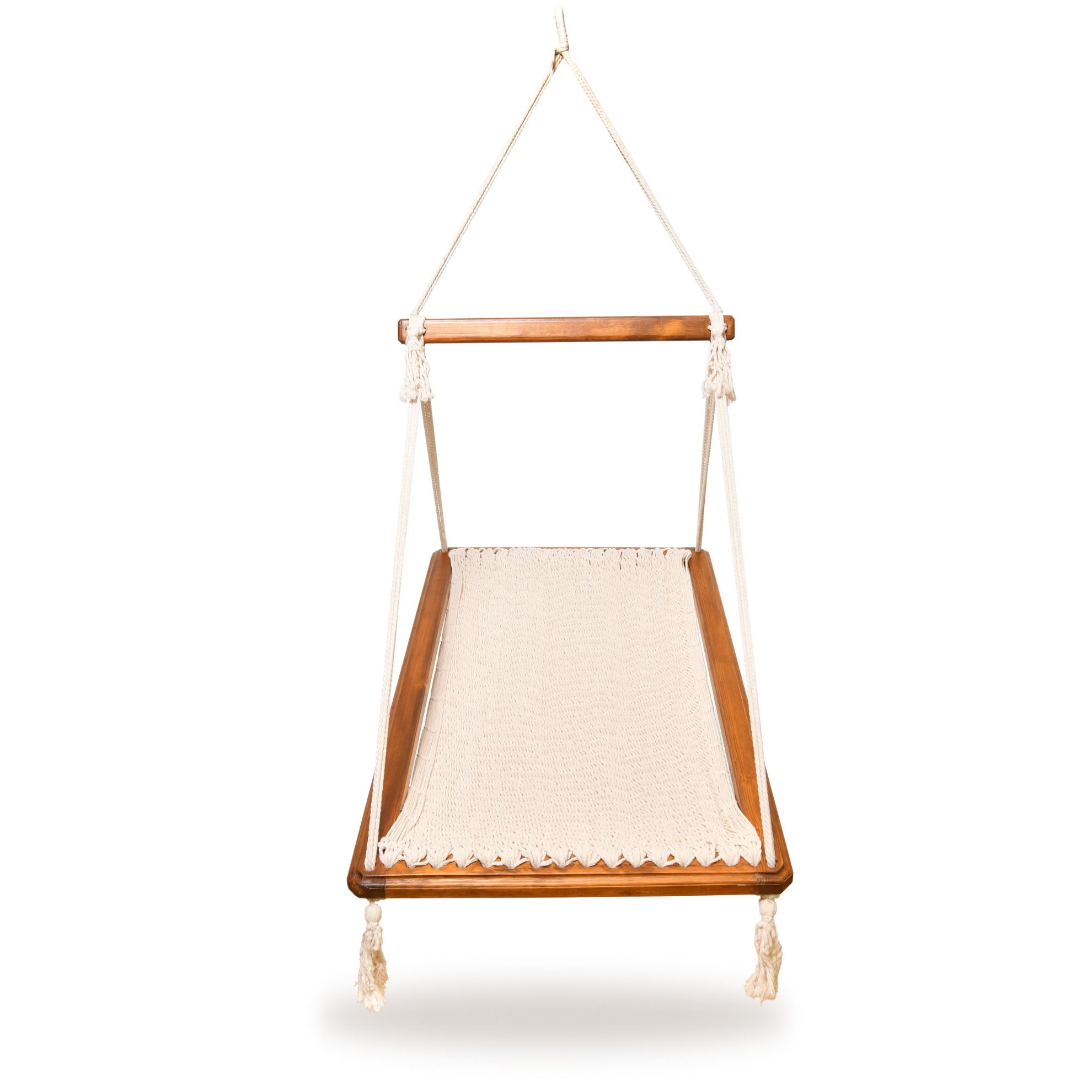 -Límite de peso: 100 kg.-Capacidad: 1 persona adulta.-Material: Hilo de algodón y madera recta de pino.-100% tejida a mano por hábiles artesanos chiapanecos.