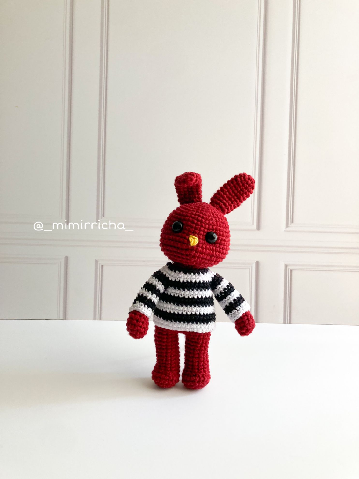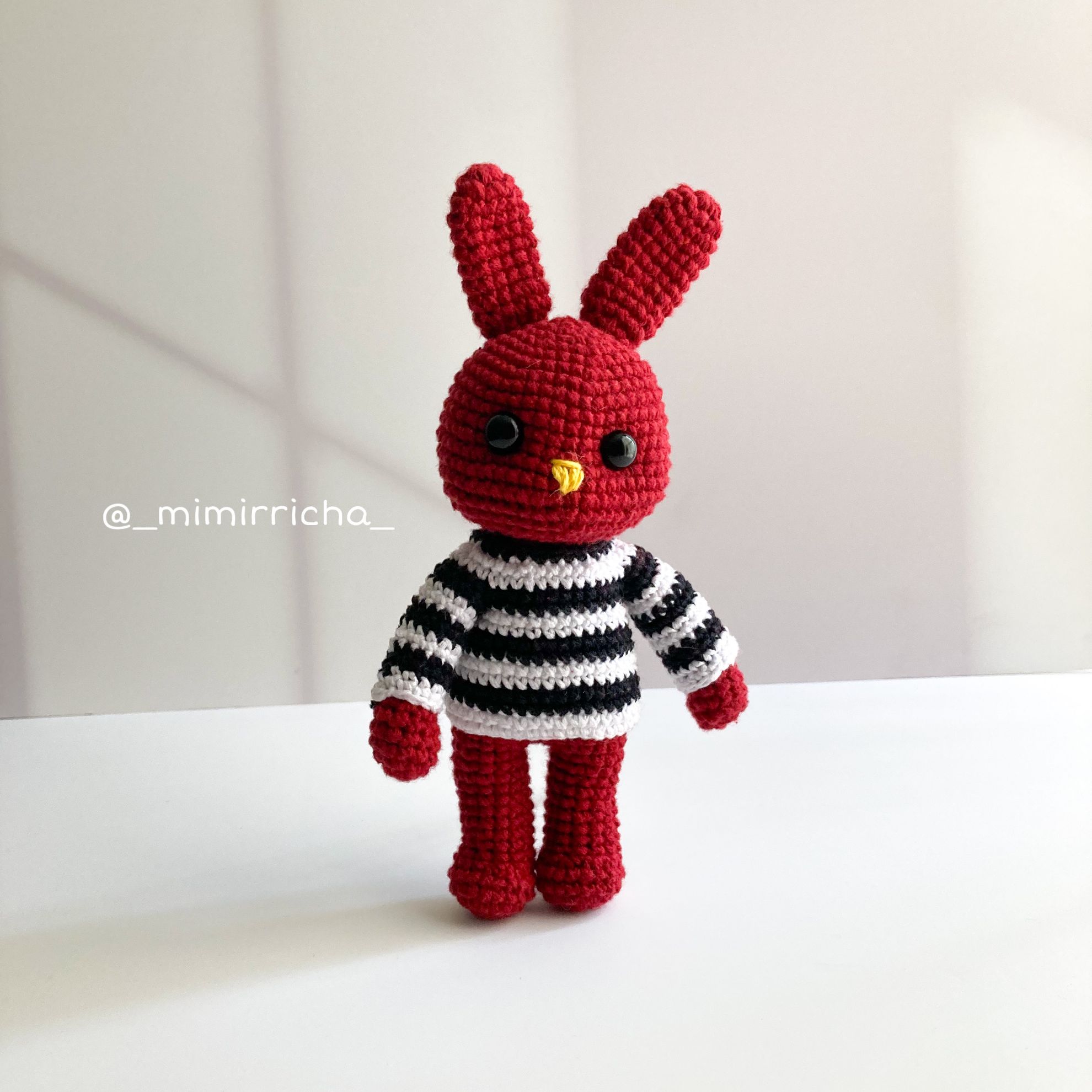 - Diseño: Este adorable conejito, está cuidadosamente tejido a mano, con detalles delicados y expresivos que le dan un carácter único. Sus lindas orejas y su dulce expresión lo hacen perfecto para abrazar y decorar.