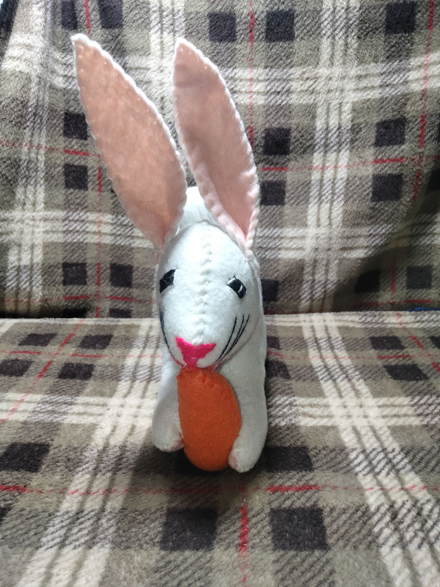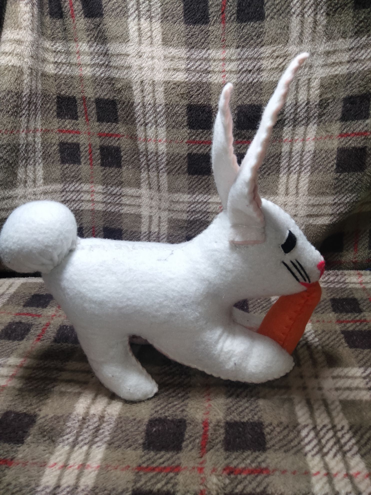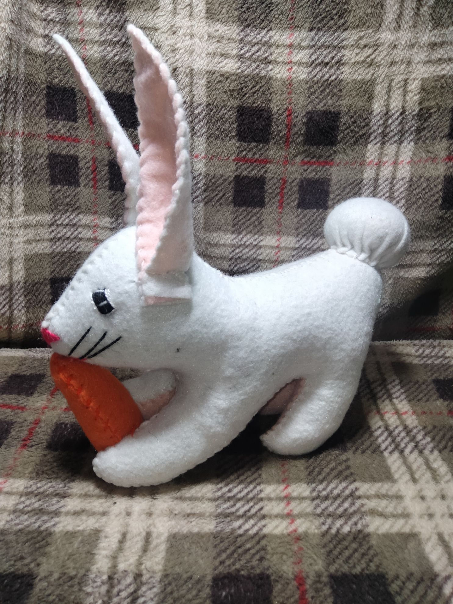 Un hermoso conejo color blanco escho de tela de fieltro elaborado a mano un hermoso adorno para la mesa o un hermoso regalo 🎁