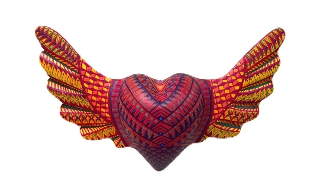 Pieza tallada en madera, una sola pieza y decorada a mano con pintura acrílica.