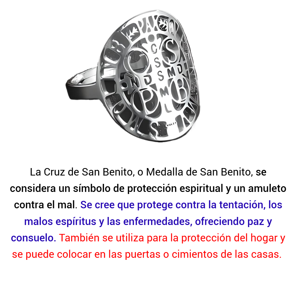 La Cruz de San Benito es un símbolo de fe y protección que protege contra el mal, la brujería, los enemigos y las envidias. También se dice que trae paz y consuelo a quienes la llevan.