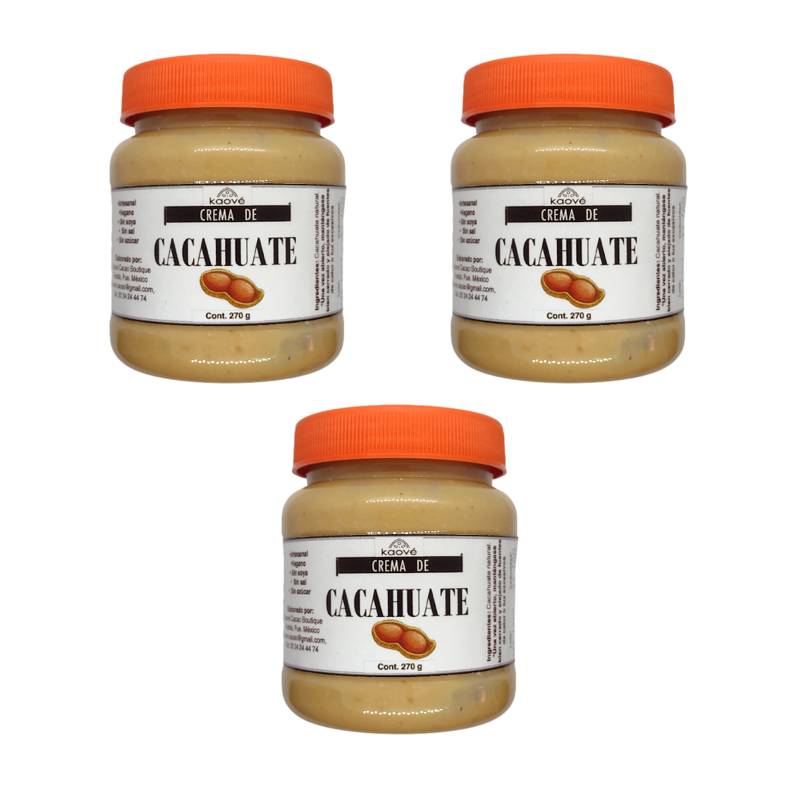 CREMA ARTESANAL DE CACAHUATE PACK 3 PIEZAS (270 g CADA PIEZA). Nuestra crema de cacahuate es 100% natural, sin sal, sin azúcar, conservadores ni grasas hidrogenadas. Hecha a mano, con ingredientes de alta calidad y sin aditivos. Ideal para un estilo de vida saludable, rica en proteínas y sabor auténtico.