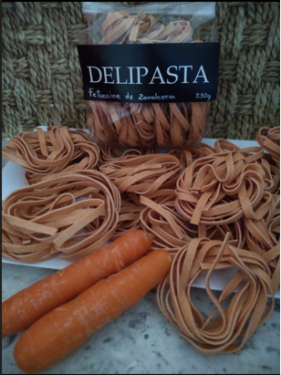 Pasta a base de semola de trigo duro sabor zanahoria