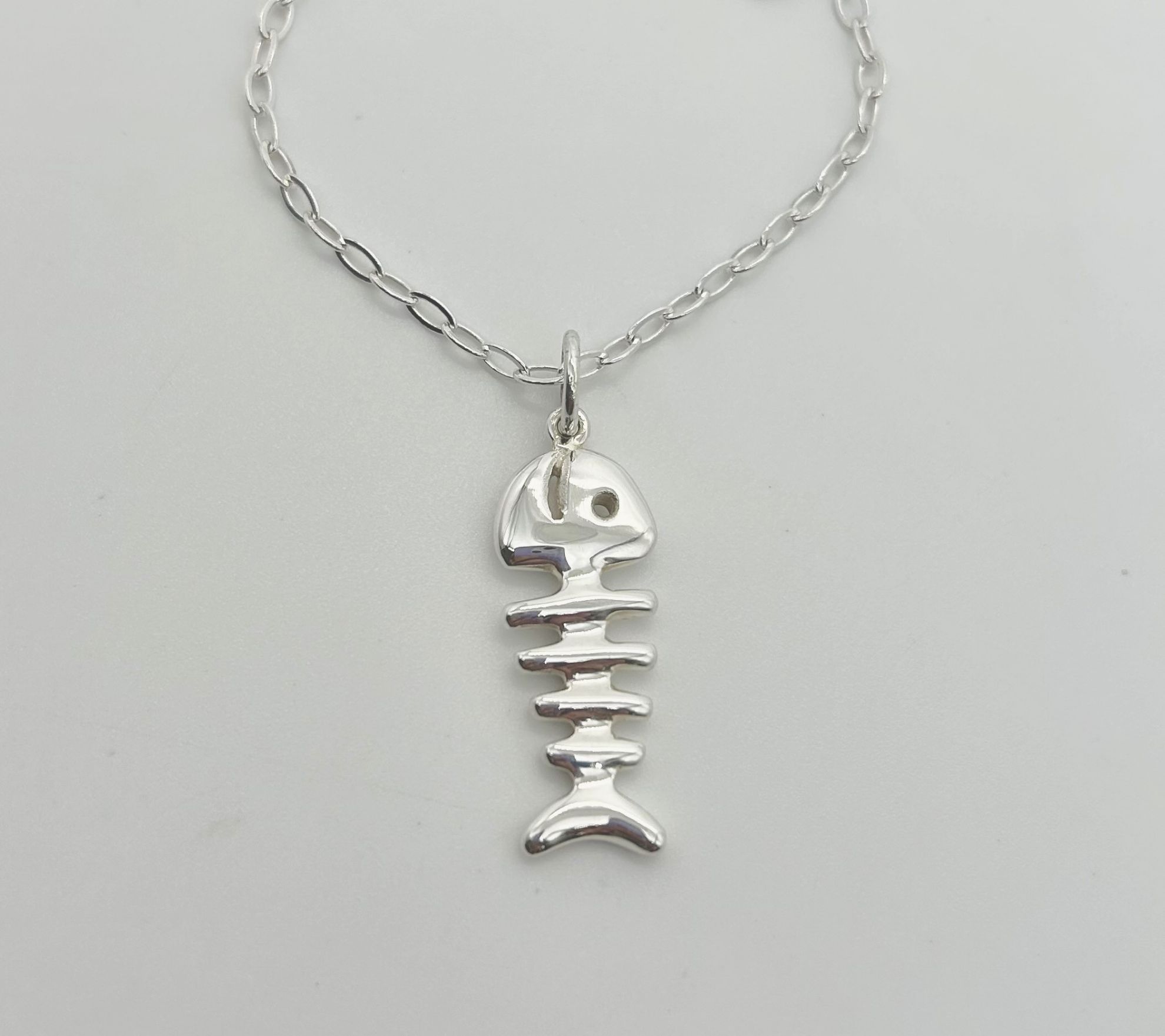 Dije esqueleto de pescado. Hecho a mano (Proceso de la cera perdida).