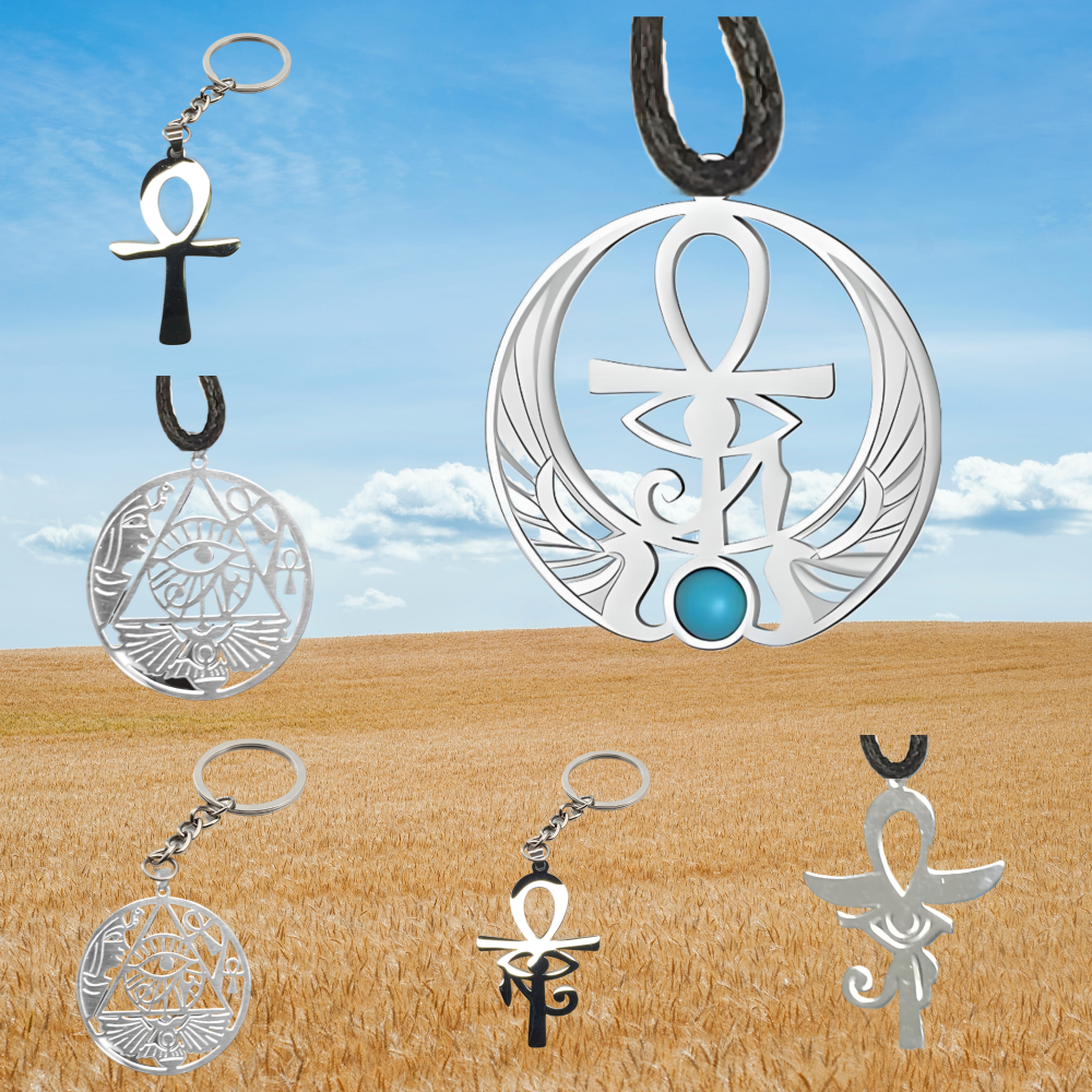 *** 1 Dije M1 en Llavero Cruz Egipcia o Ankh O Llave de la Vida + OJO de HORUS 35X25MM+ ACERO INOXIDABLE ALTA DURABILIDAD ( DIJE CURADO) **