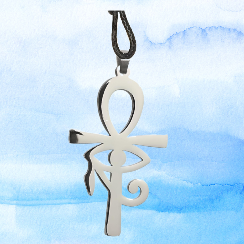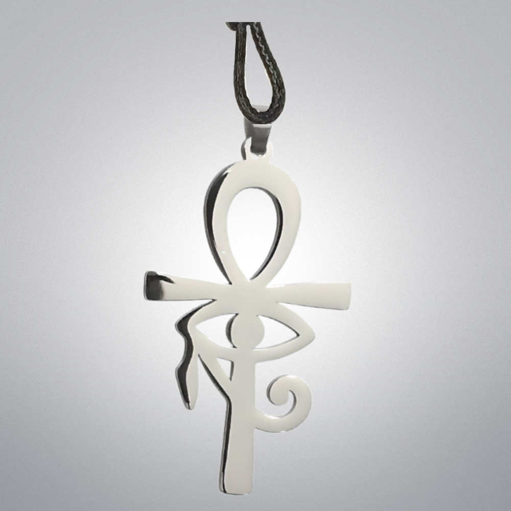 *** 1 Dije M1 en Collar Cruz Egipcia o Ankh O Llave de la Vida + OJO de HORUS 35X25MM+ ACERO INOXIDABLE ALTA DURABILIDAD ( DIJE CURADO) **