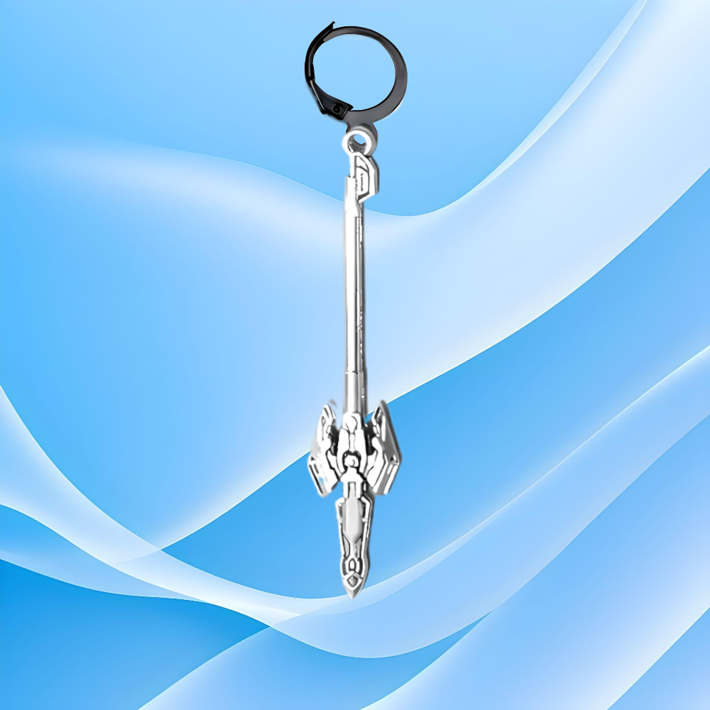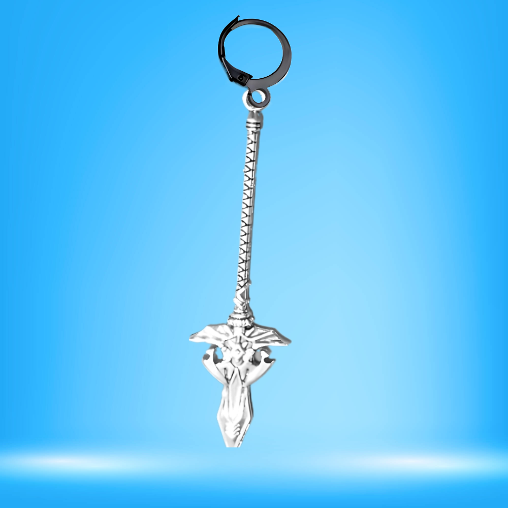 | 1 Arracadita Negra con Lanza Larga Guardia Celestial Alas de Angel Color Plata 60 x25mm |