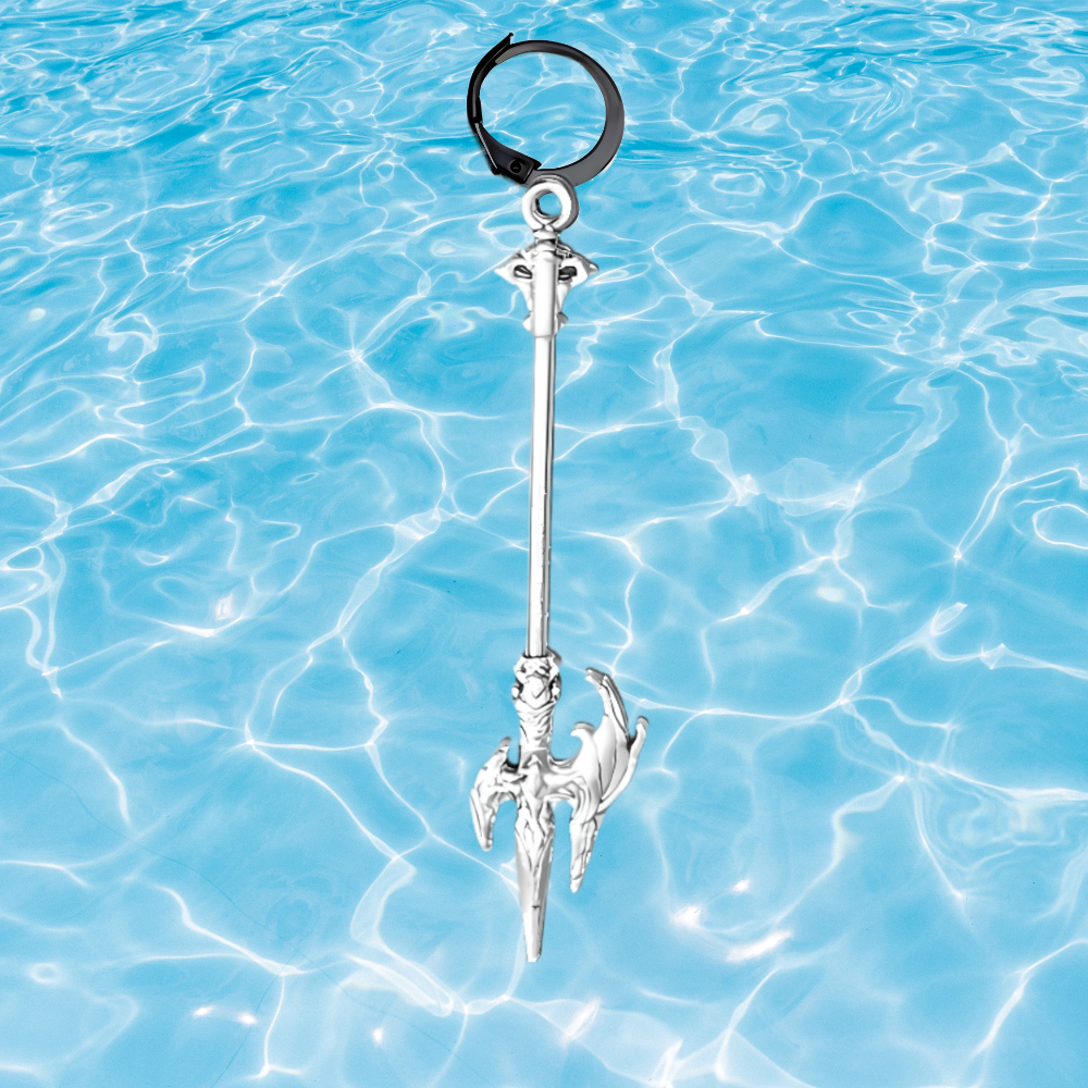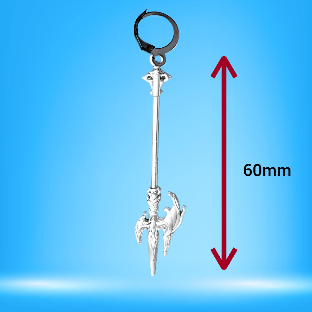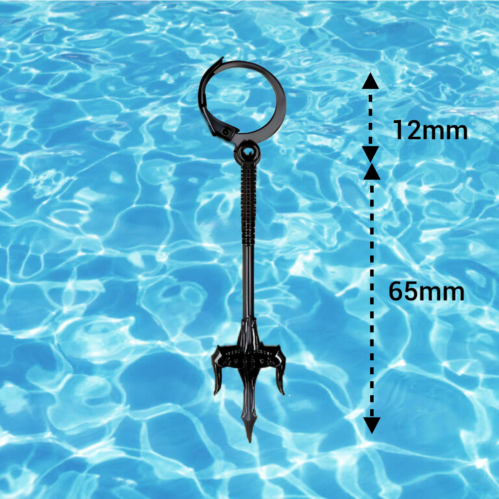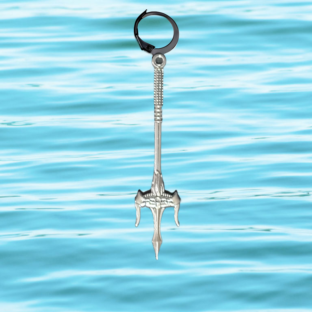 | 1 Arracadita Negra con Tridente Poseidon Color Plata M1 65x30mm |