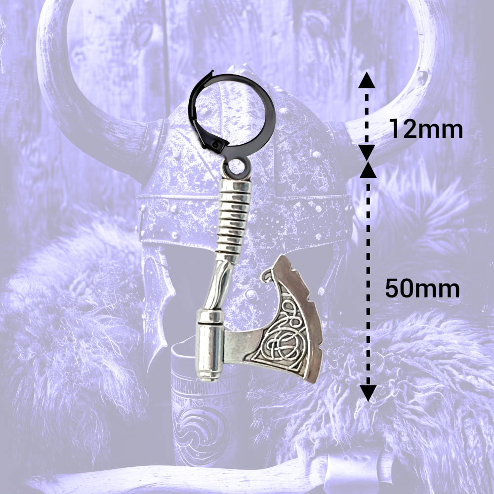 | 1 Arracadita Negra con Con Hacha Vikinga Grande Pico de Aguila 60x30mm |