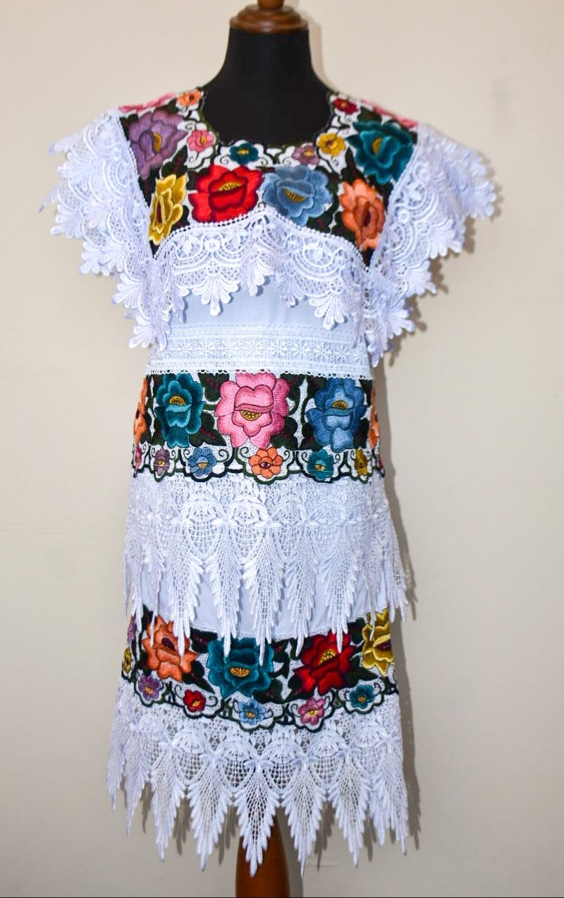 Terno de matizado con hilos de seda hecho en tela blanca de algodón para niña de 7 a 8 años de edad
