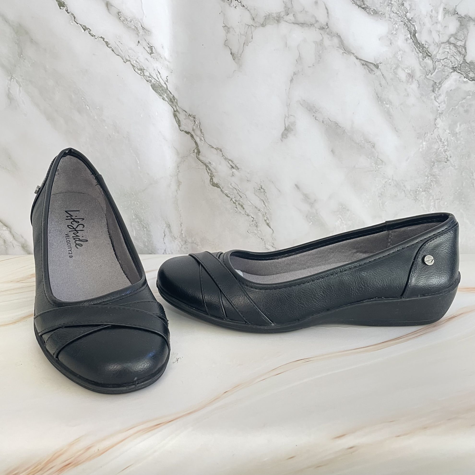 Flats Life Stride Color: BLACK TUMBLE Talla: 4 , Estilo: BALLERINA CÓMODO
