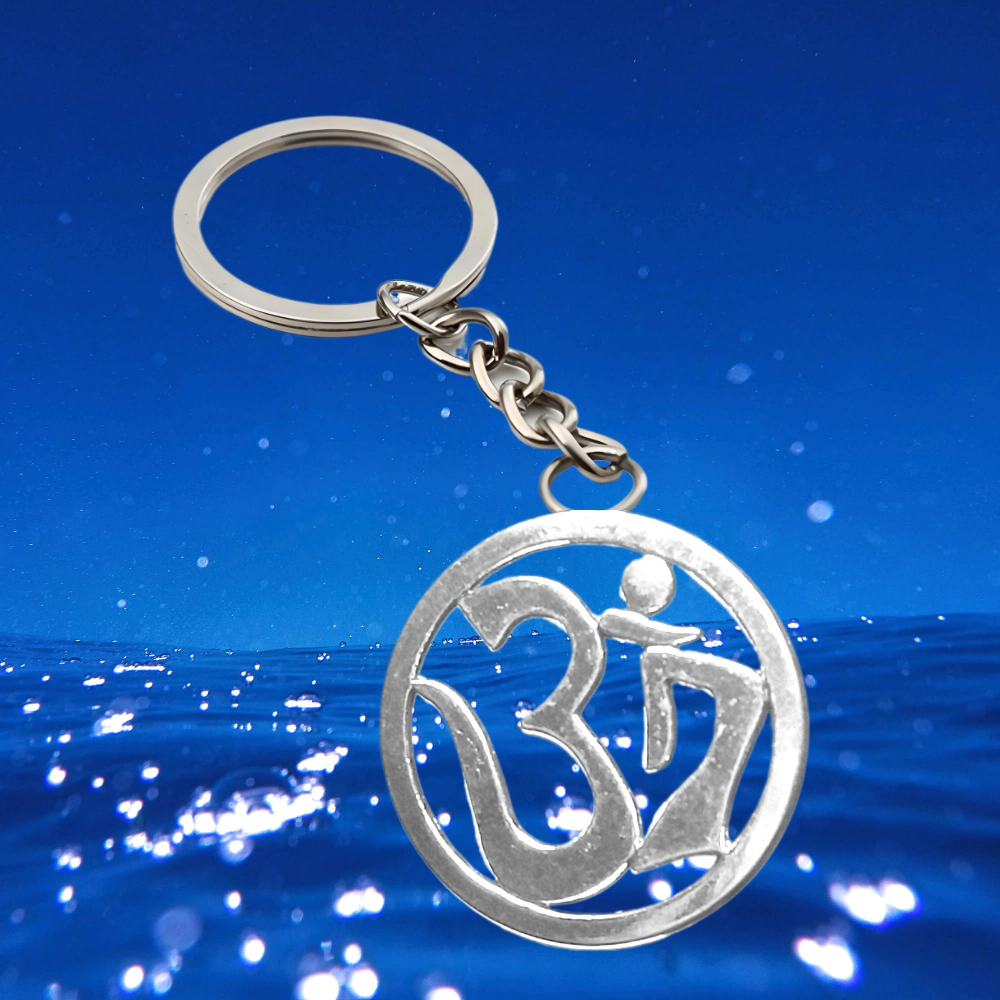1 Llavero con 1 Dije Redondo Grande Acero Inoxidable OM 30x30mm Color Plata