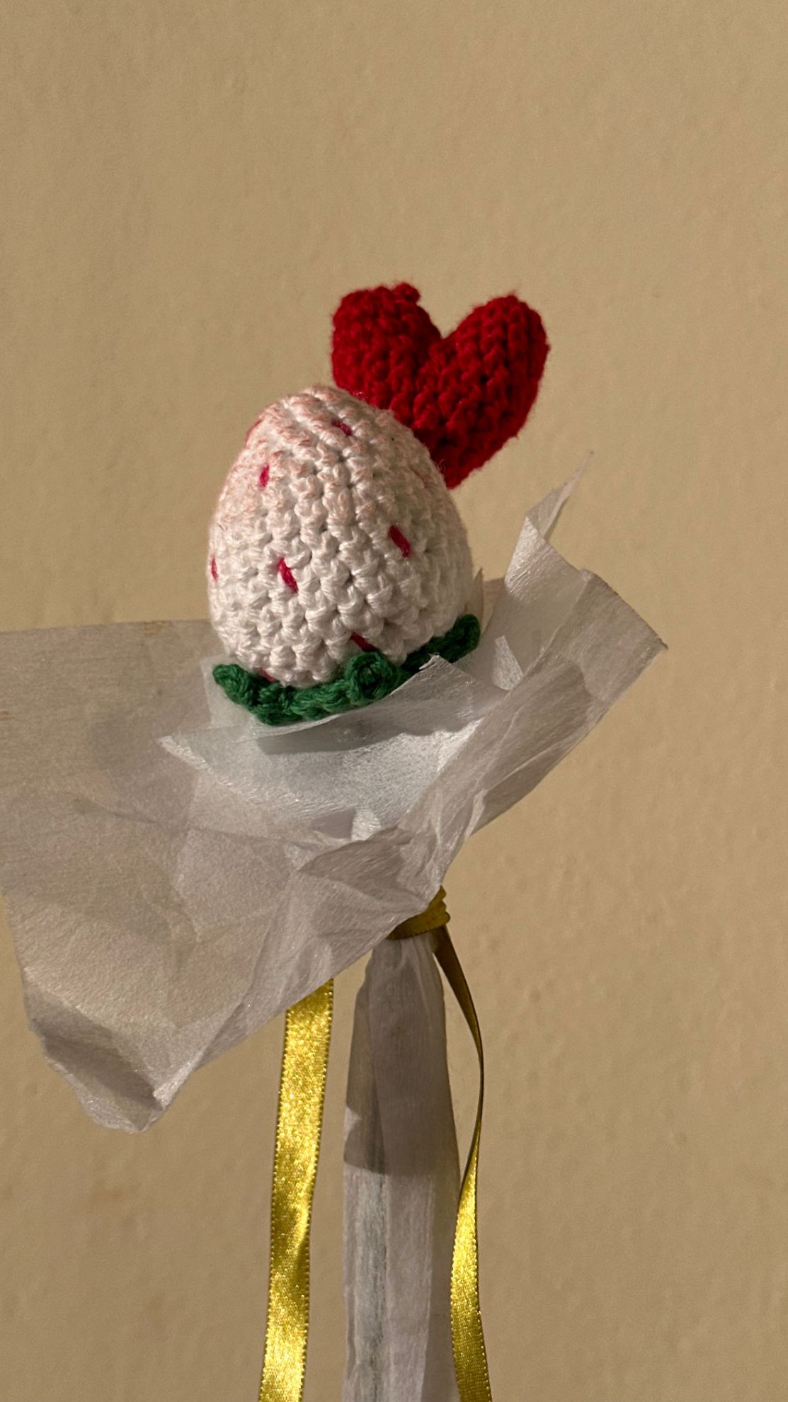 Esta singular fresa blanca ha sido elaborada a mano con la técnica de crochet, presentando una textura suave y un aspecto fresco e innovador. Su superficie clara destaca con pequeñas semillas tejidas, mientras que a su lado se encuentra un encantador corazón crochet en tonos que contrastan sutilmente, simbolizando afecto y ternura. La combinación de la fresa y el corazón crea una pieza artesanal ideal para decorar o regalar, perfecta para quienes aprecian la belleza de los detalles y el toque cálido del trabajo hecho a mano.