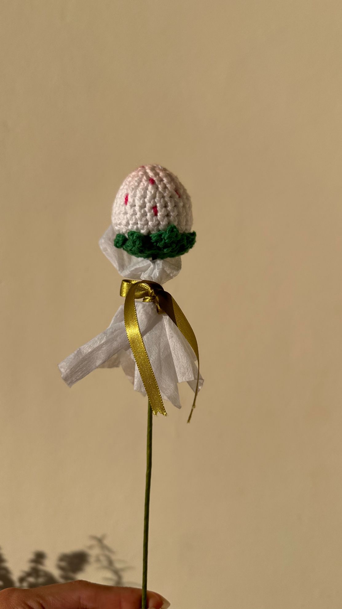 Esta encantadora fresa ha sido elaborada a mano con la técnica de crochet, utilizando un hilo blanco suave que le aporta un estilo único y original. Su superficie está ligeramente polvoreada con un sutil color rosa, creando un efecto degradado que imita la frescura de una fresa madura. Los pequeños detalles de las semillas y la textura del tejido aportan realismo y resaltan la dedicación en su confección. Perfecta como decoración o para colecciones de frutas tejidas, esta fresa crochet combina creatividad y delicadeza en una pieza artesanal única y cautivadora.