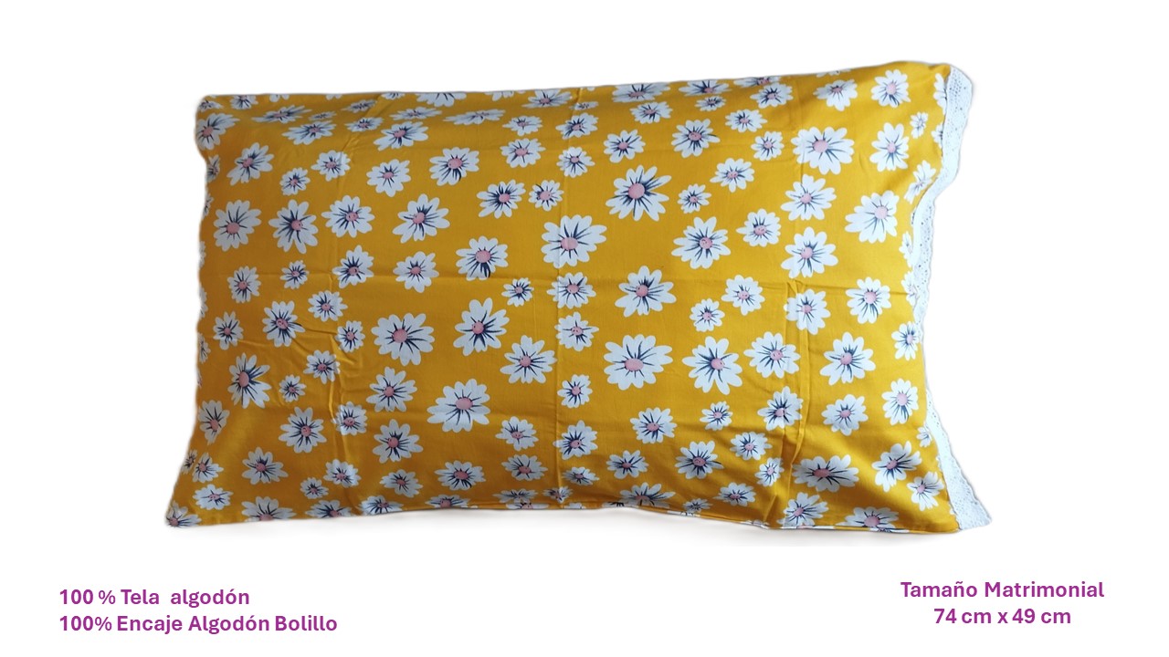 Nuestras fundas son elaboradas con tela en algodón 100% decorada en la orilla con un hermoso encaje bolillo algodón 100%, además de brindar una bella vista en su recamara, estamos seguros que tendrá un descanso fresco y reparador ya que sus fibras se adaptan a cualquier clima brindando una suavidad exquisita al tacto. - 1 pza. cada paquete encontrara - medidas (incluye encaje) 74 x 49 cm (Encaje ancho 5 cm / 100 % algodón) PRECIO+ FLETE (NO INCLUIDO) favor de solicitar cotización para saber el precio neto