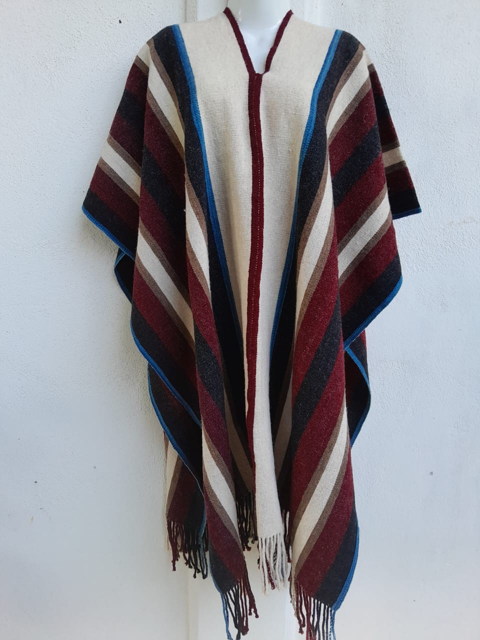 Gabán de lana de borrego en hilo delgado, elaborado en telar de cintura.