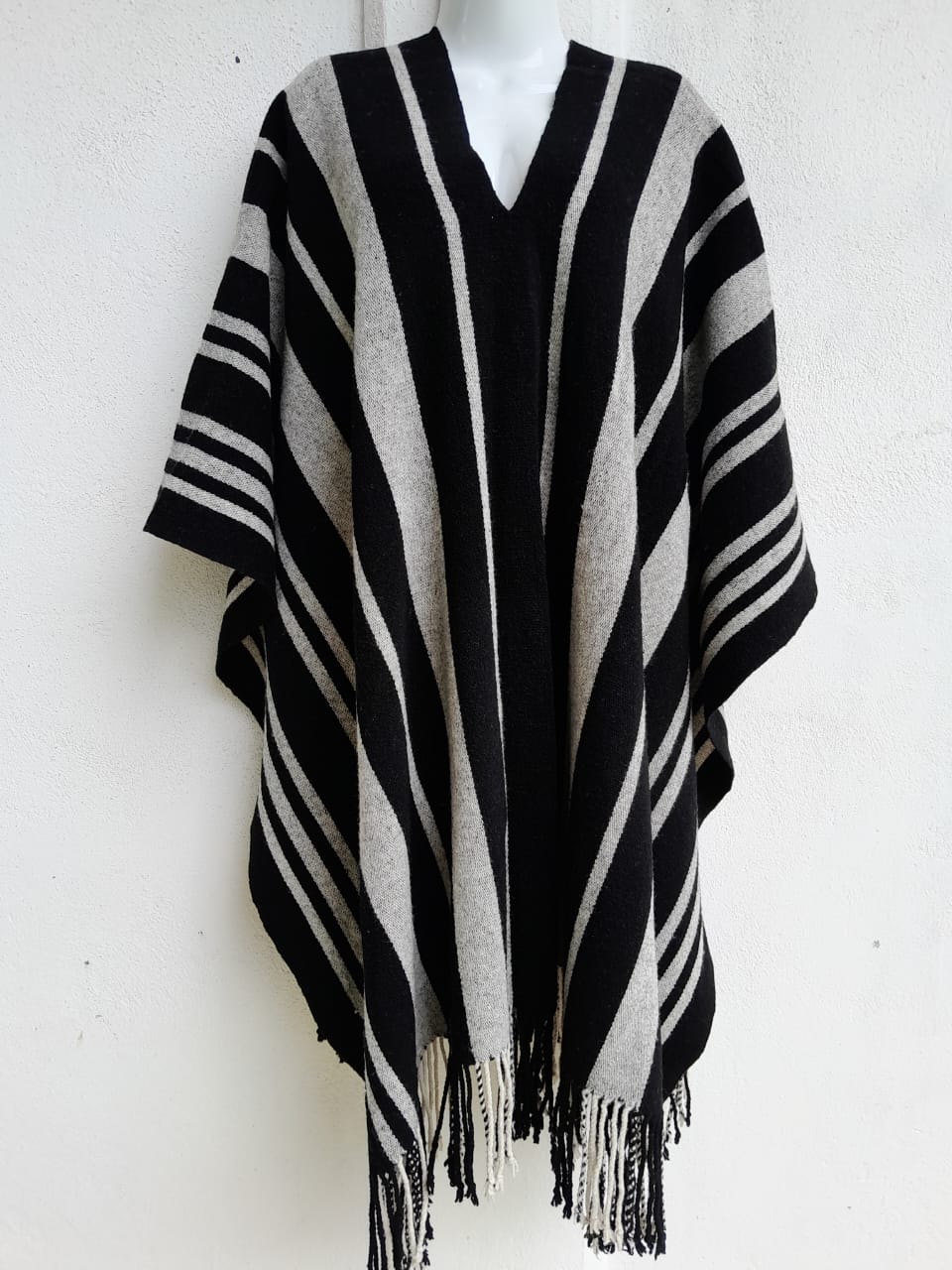 Gabán de lana de borrego en hilo delgado, elaborado en telar de cintura.