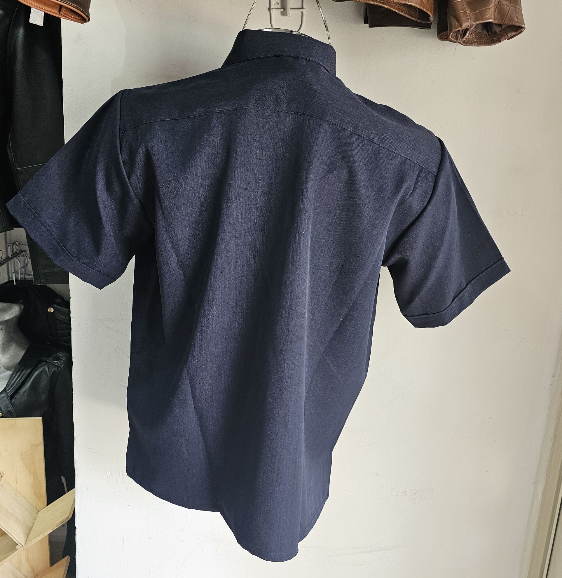 Guayabera de Lino Azul Marino Manga Corta con bordados elegantes. 100% lino bacional. Diseño de vanguardia y juvenil ideal para toda ocasión