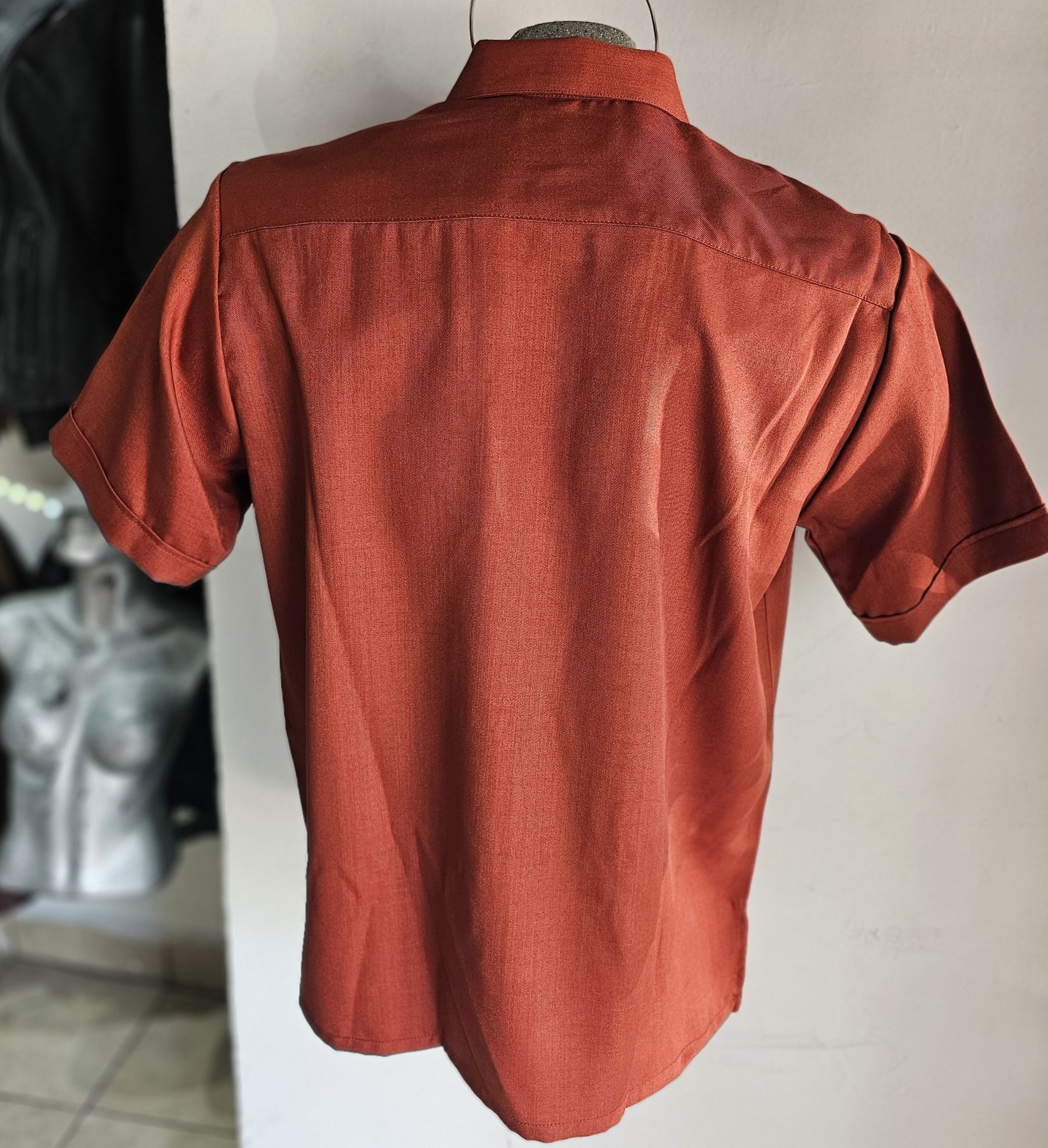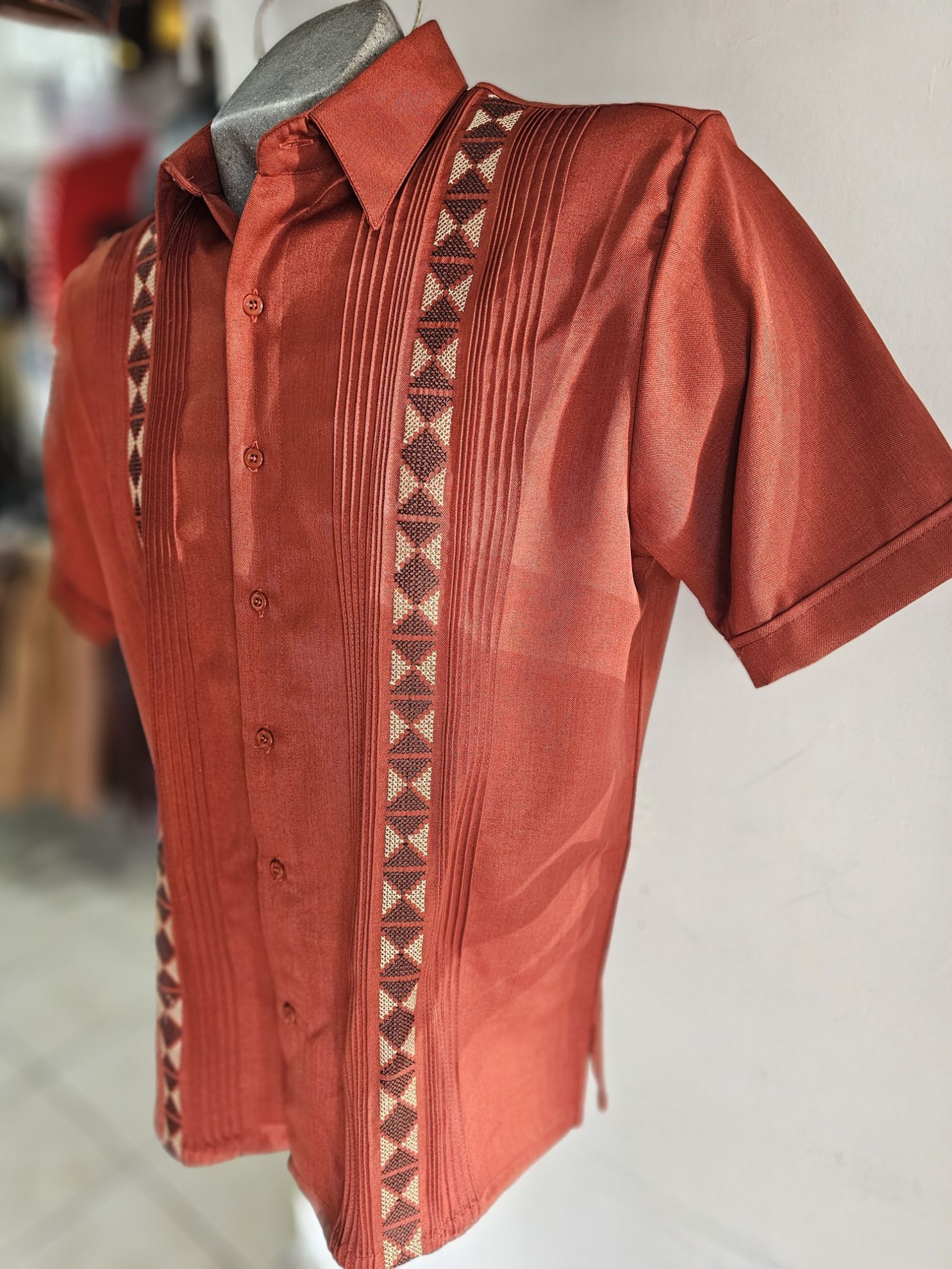Guayabera de Lino Terracota Manga Corta. Fresca y muy durable 100% lino nacional. Diseño de vanguardia y juvenil