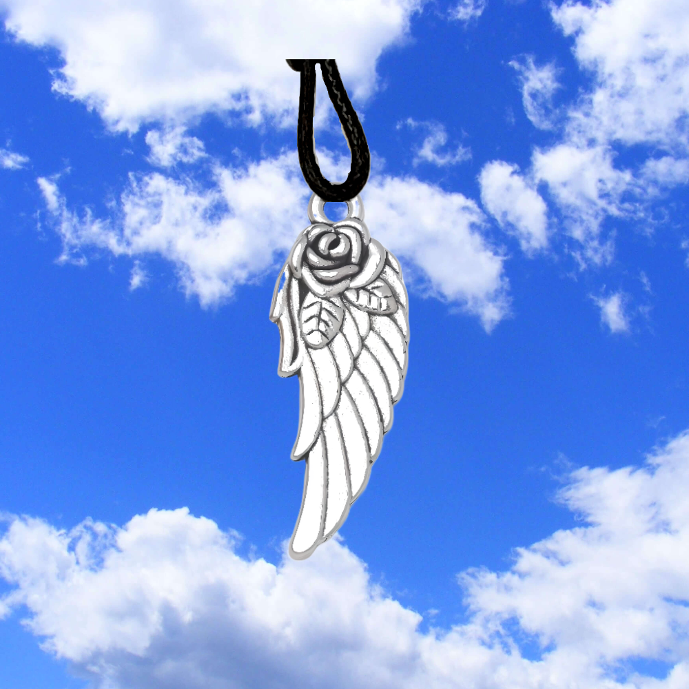 1 Collar con 1 Dije de  Alas de Angel Medianas con Rosa color plata    Color Plata 31X11mm