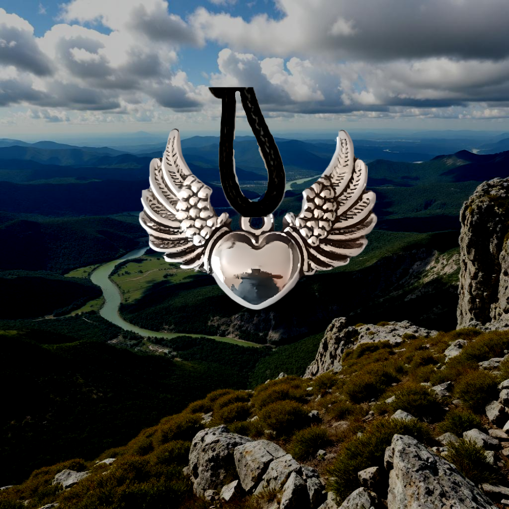 1 Collar con 1 Dije de  Alas de Angel Medianas Solidas Tipo Corazon Cerradas por Abajo Color plata  40X25mm