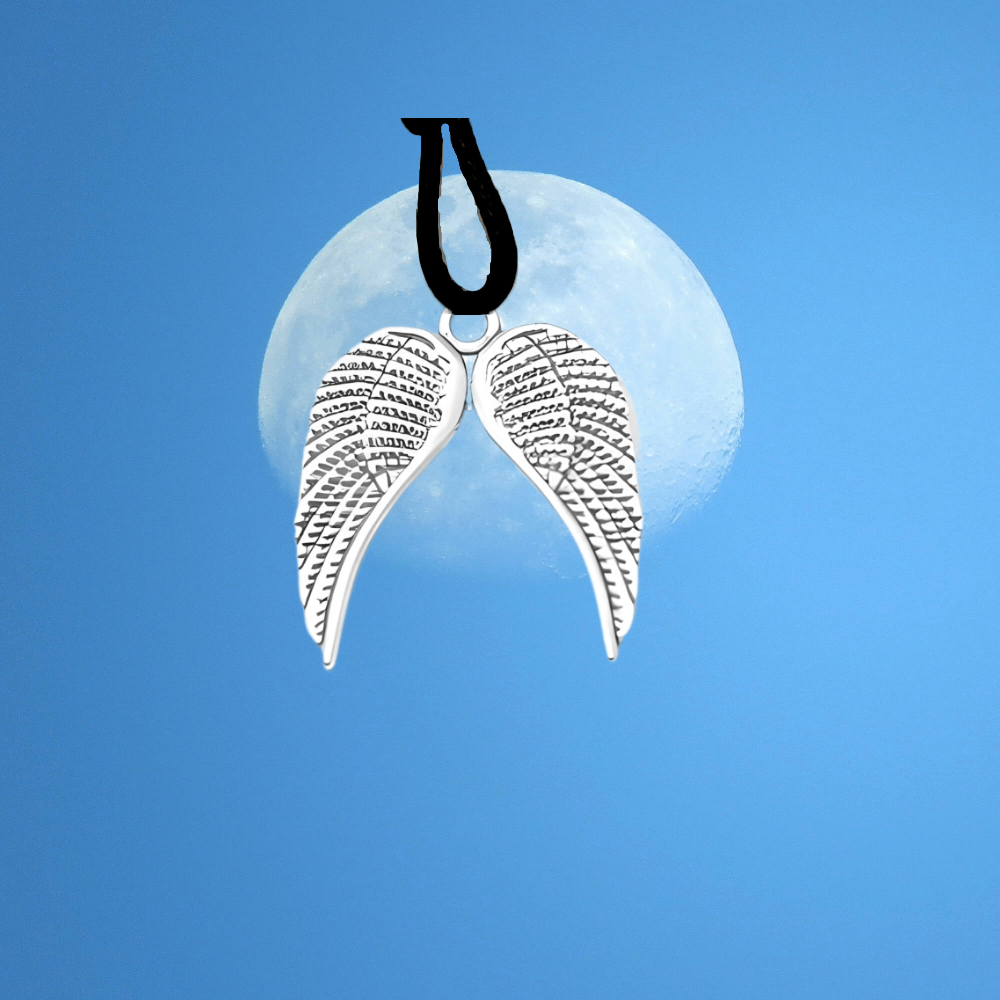 1 Collar con 1 Dije de  Alas de Angel Medianas Plumas Contorneadas y Resaltadas Color plata    Color Plata 30X10mm