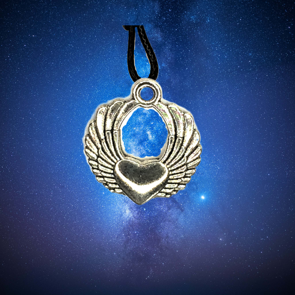 1 Collar con 1 Dije de  Alas de Angel Chicas Semi Ranuradas Tipo Corazon Cerradas por Abajo Color plata  20X15mm