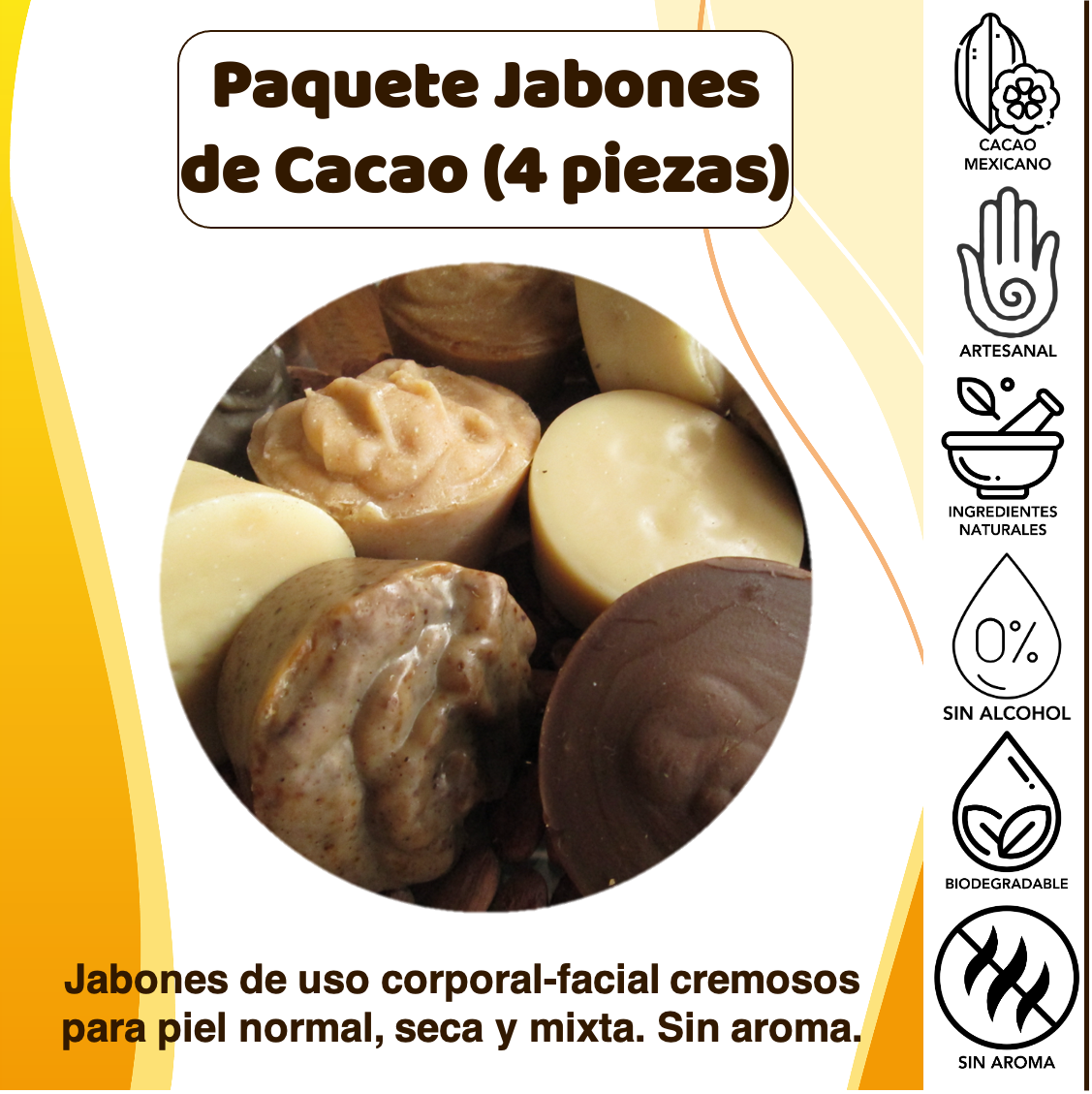 JABONES ARTESANALES DE CACAO MEXICANO (PAQUETE DE 4 PIEZAS DE 90g c/u)