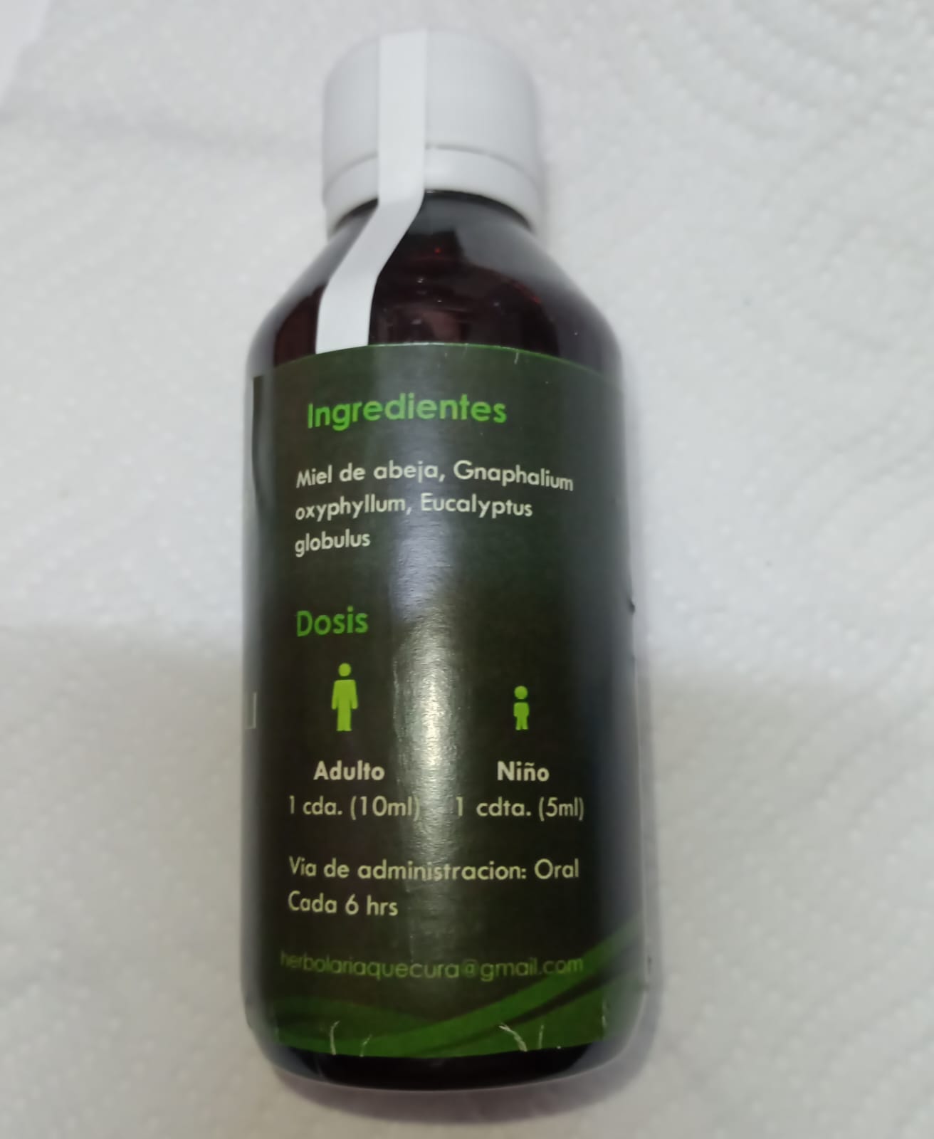 Este jarabe para la tos esta elaboradoo sin conservadores con miel de abeja natural y plantas medicinales Gnaphalium oxyphyllum, Eucalyptus globulus , contiene 125 ml