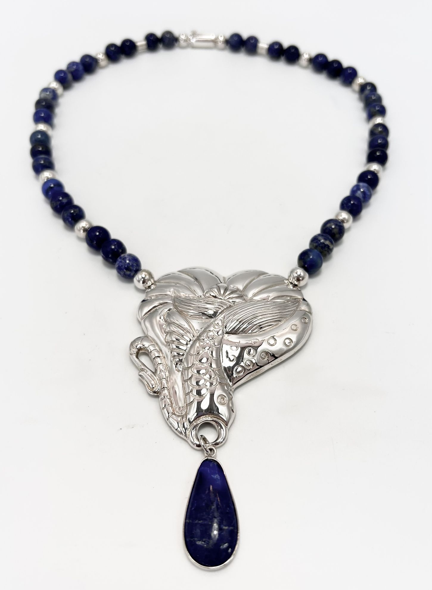 Largo gargantilla: 33 cm(completo) / Ancho pieza de plata pez: 7 cm/ largo 11cm.