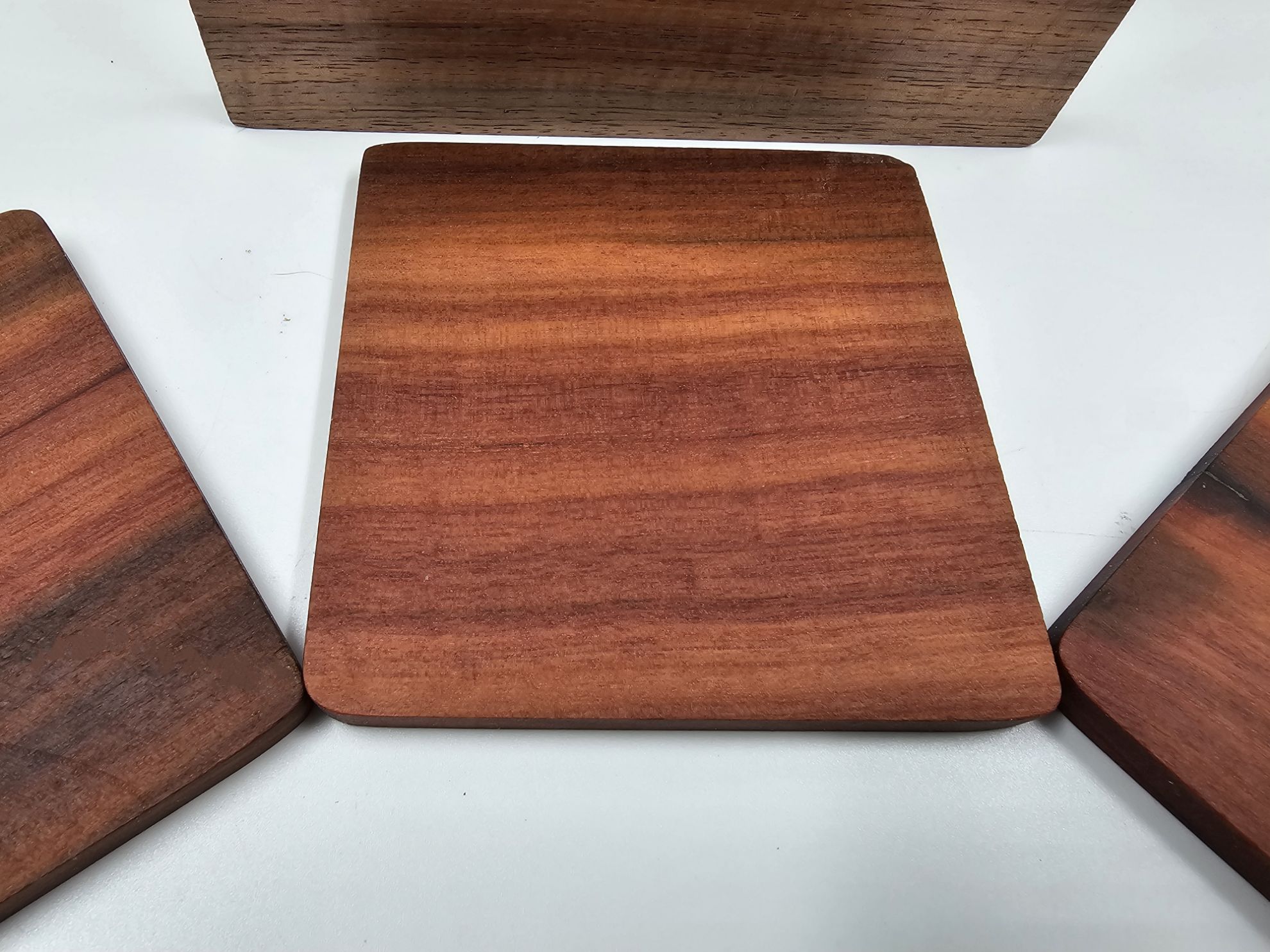 Hermoso juego de 8 posavasos elaborados en Madera de Zapote. Madera muy dura y bella. La base esta elaborada con Madera de Cedro de la Peninsula de Yucatán