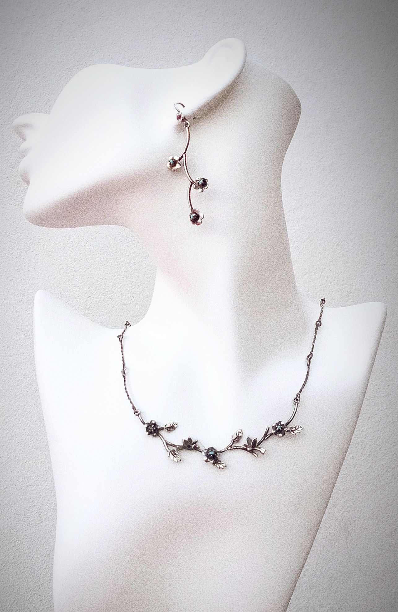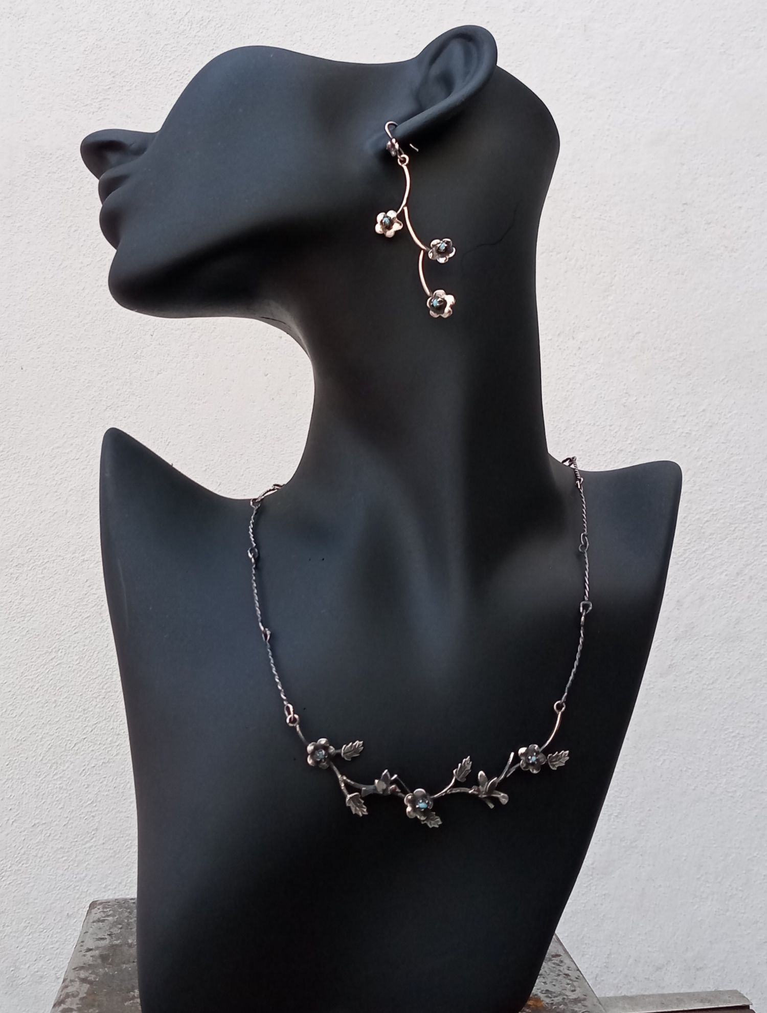 Juego de Gargantilla y Aretes barrocos o de Pajaritpo hechos en plata Ley 925, 100% hechos a mano, muy elegantes y casuales.