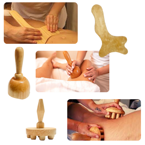 SE BASA EN UN MASAJE REALIZADO A TRAVÉS DEL USO DE INSTRUMENTOS DE MADERA DE DIFERENTES MODELOS PARA CADA PARTE DEL CUERPO QUE SE DESEA TRABAJAR.