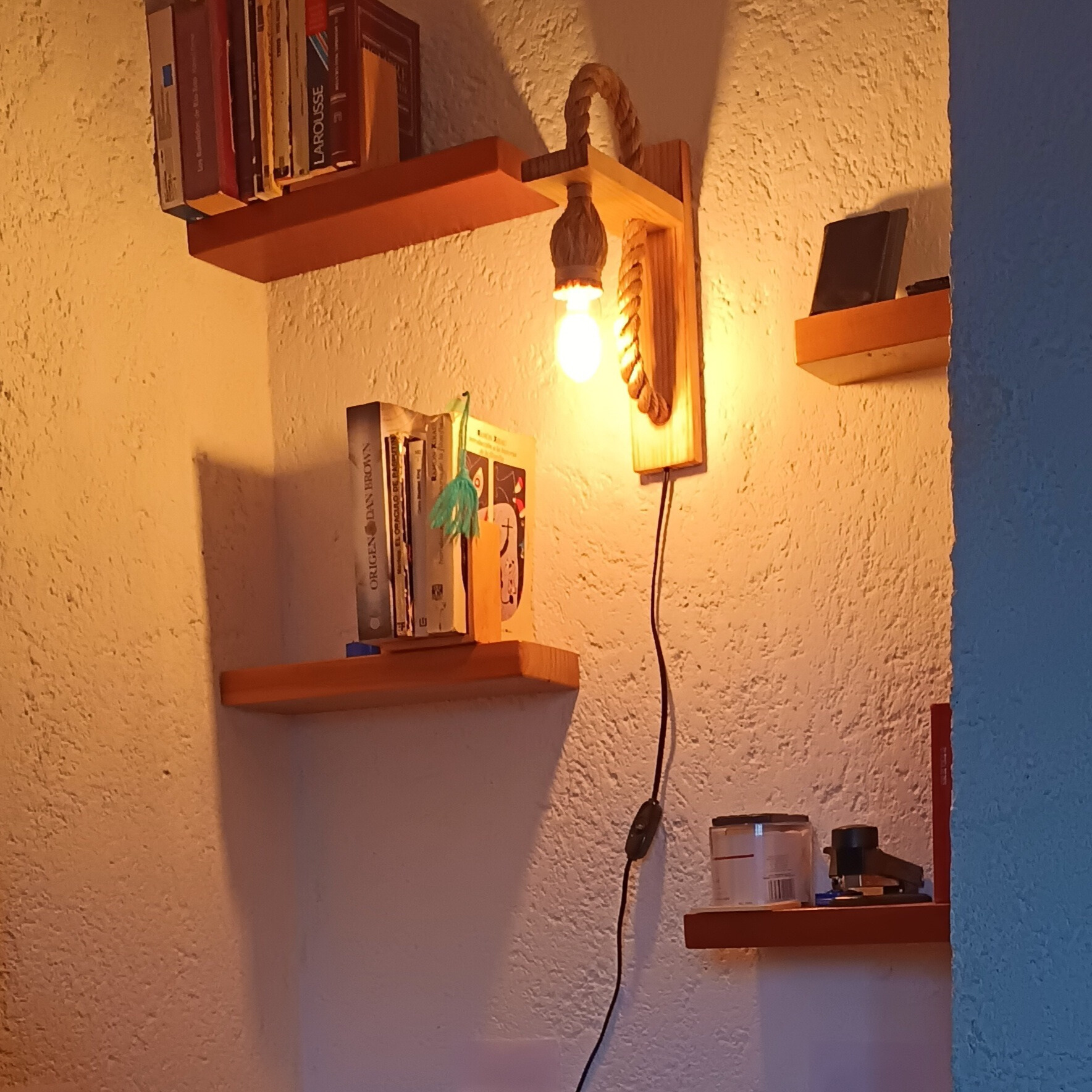 *Lámpara rústica de pared hecha a mano con madera de pino y cuerda de henequén