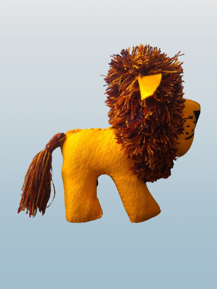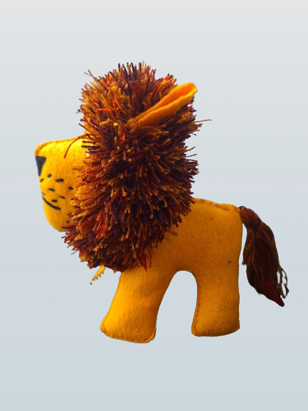 Bonito León de fieltro, con textura suave para decorar la sala, habitación o obsequiar a un ser querido o amigo.