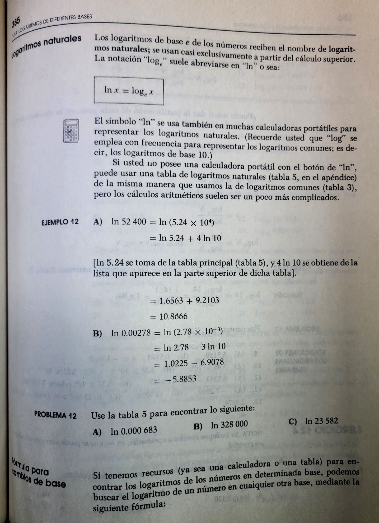 Logaritmos naturales (ln N = loge N)