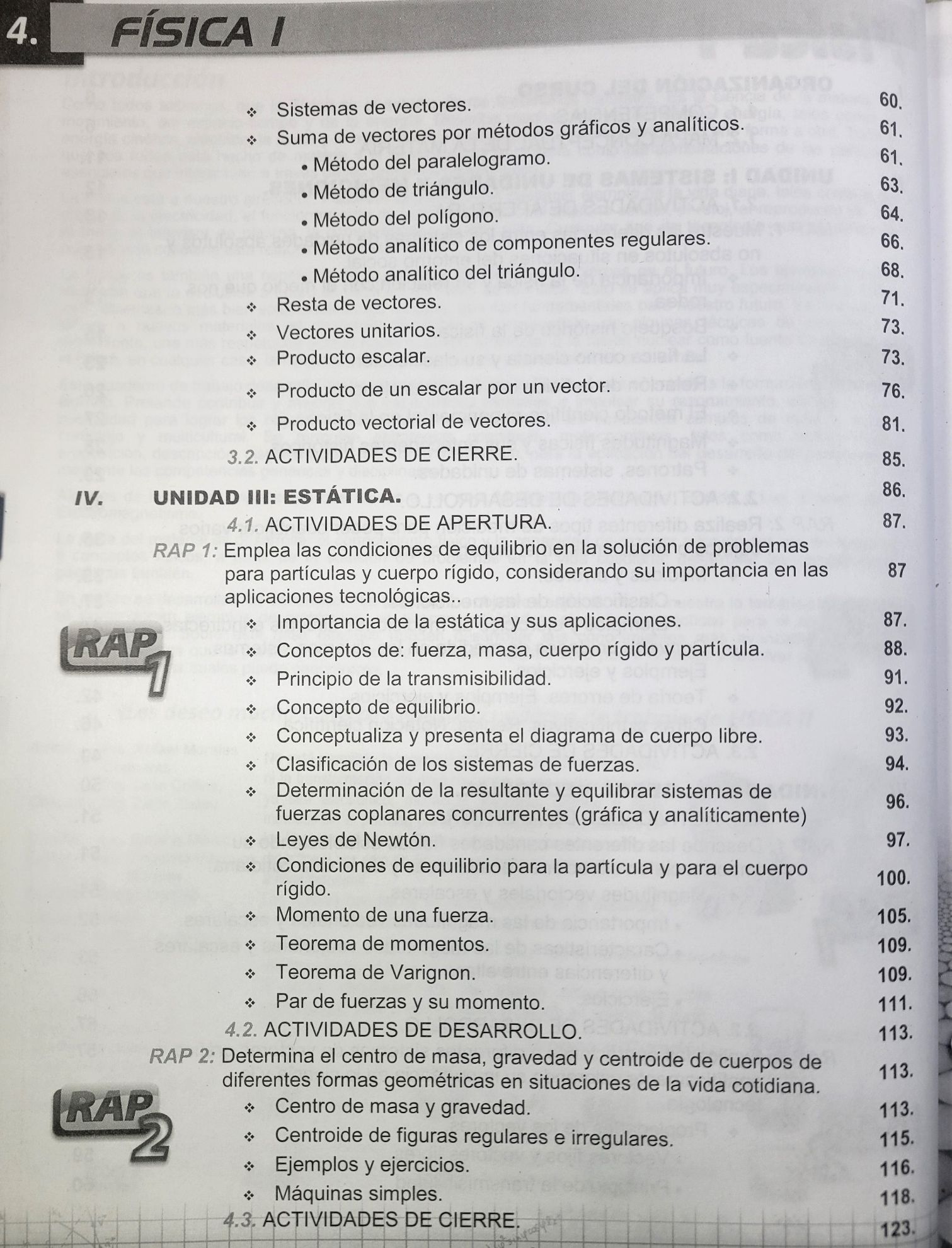 Algunos de los temas importantes que vamos a ver son: sistemas de unidades y mediciones; álgebra vectorial que se utiliza en la física; estática (fuerza, masa, partículas, cuerpo rígido) y cinemática (el movimiento de los objetos en una o dos dimensiones).