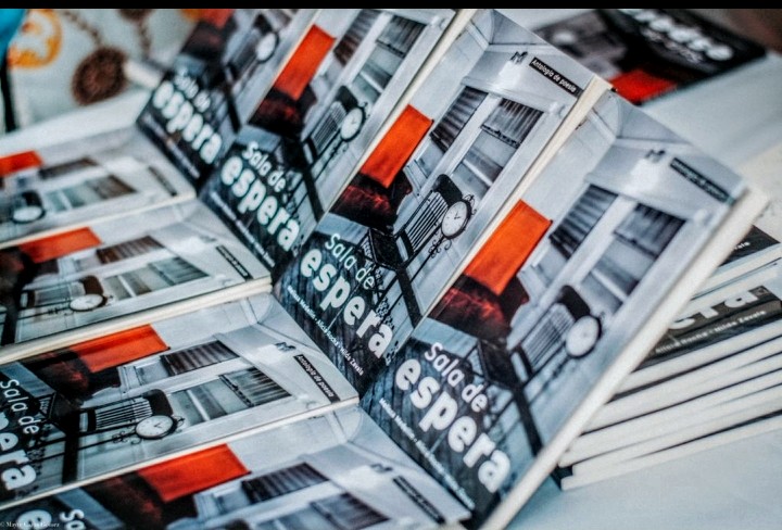 Sala de espera no es un libro, sino tres. Su forma, como el fuego, surge con la primera hojeada: una base que da soporte a la llama creciendo con el viento, que ilumina la noche con colores vibrantes y se extiende hasta el cielo, sus brasas vuelan y se pierden en el horizonte.
